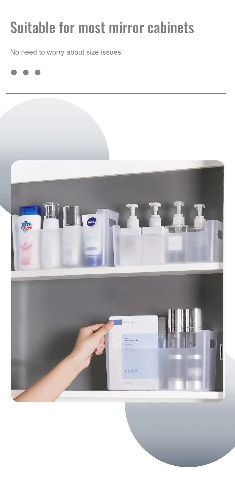 Mirror cabinet U-shaped storage box, small and large in size