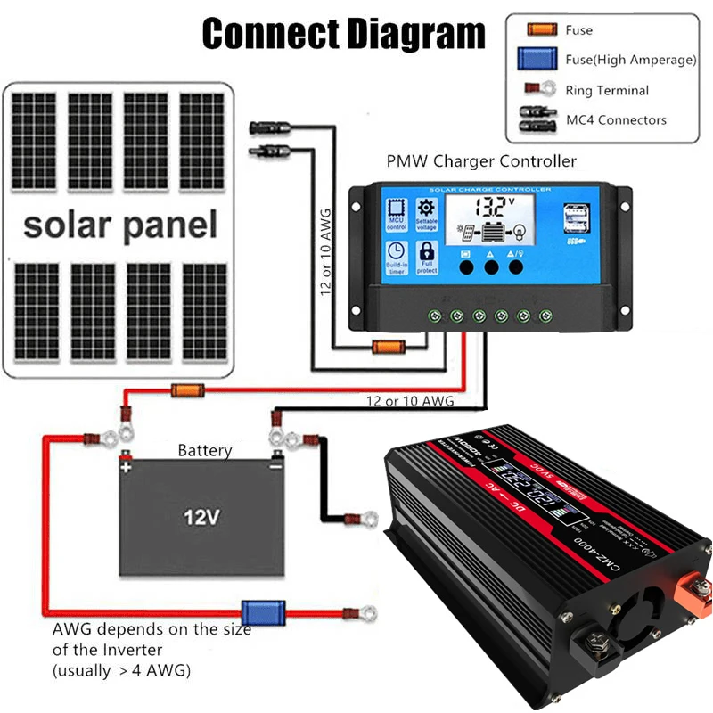 (When the battery voltage is lower than 10.5V, the inverter is low voltage protection, when the battery voltage is higher than 15V, the inverter high voltage protection)