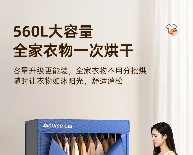 220V Chigo Foldable Clothes Dryer Large Capacity Home Drying Machine Wardrobe New Design BDC
