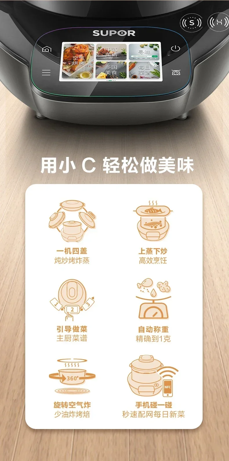 220V SUPOR Small C Master Chef Machine Smart Stir Fry Cooking Robot Multi-Function Automatic Kitchen Appliance BCW