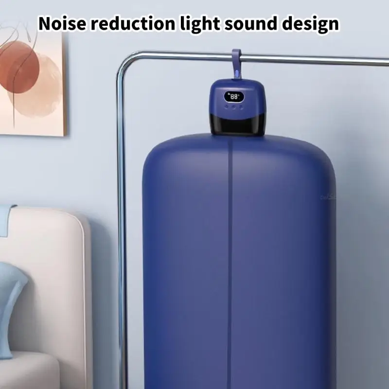 Portable clothes dryer with foldable design enables rapid drying for travel while saving 80% storage space compared to traditional dryer.