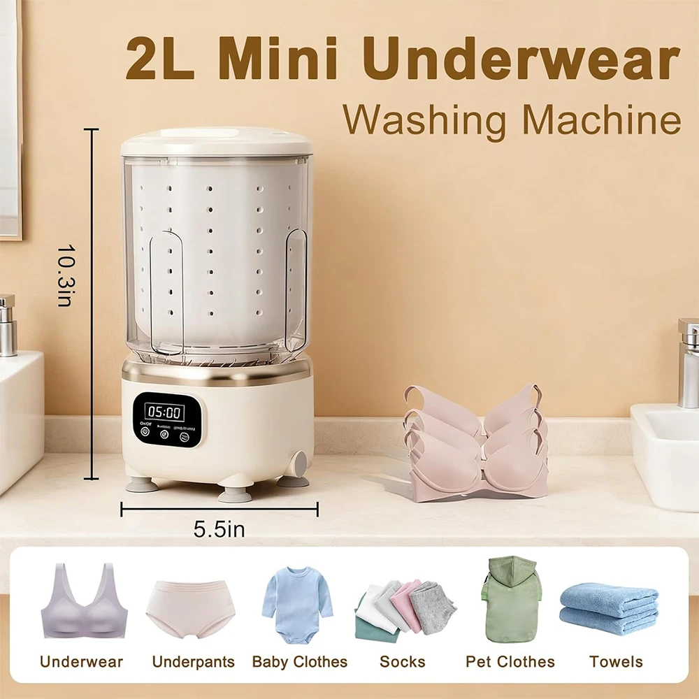 2L Underwear Washing Machine Portable Washer and Spin Dryer Combo Mini Washing Rechargeable Cordless Washing Deep Cleans Small Clothes for Travel