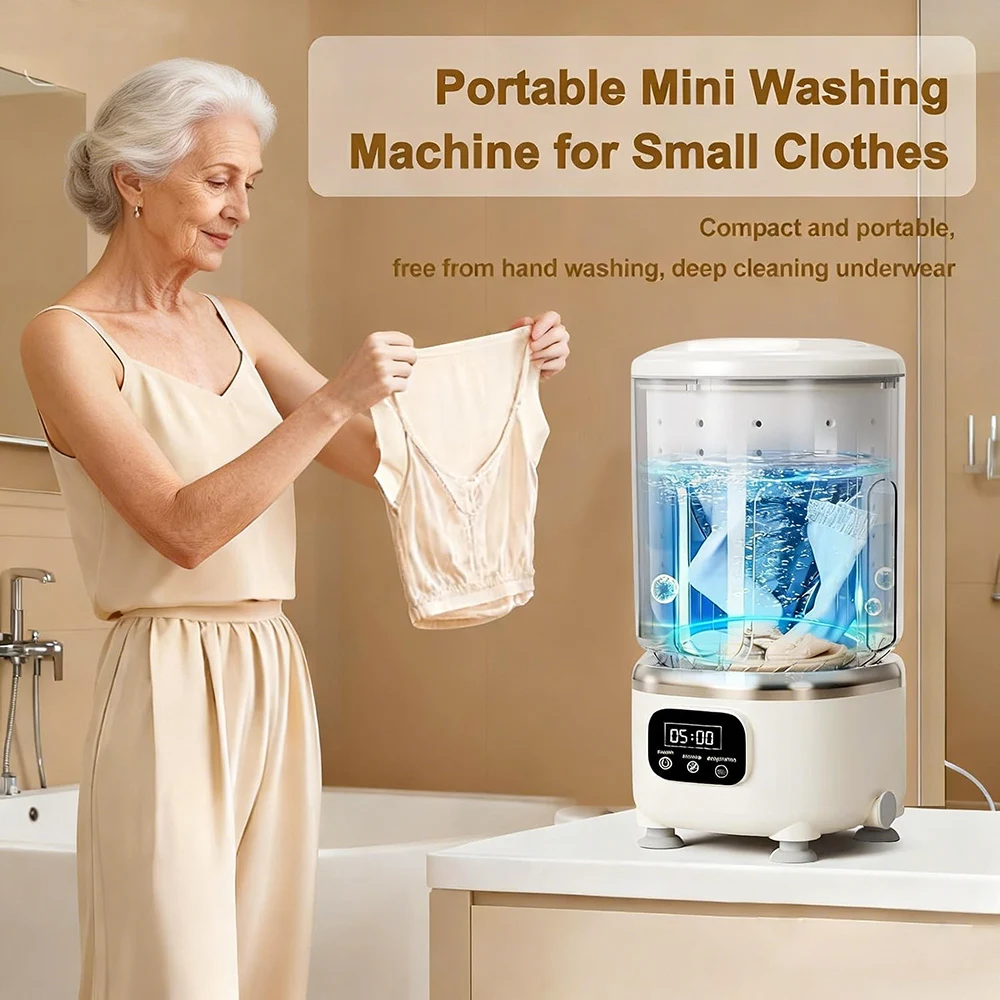 This mini washing machine features three built-in modes: 5-minute wash, 5-minute rinse, and 3-minute spin. With just one press, the entire cleaning process is completed automatically. No hand washing and no wringing needed.
