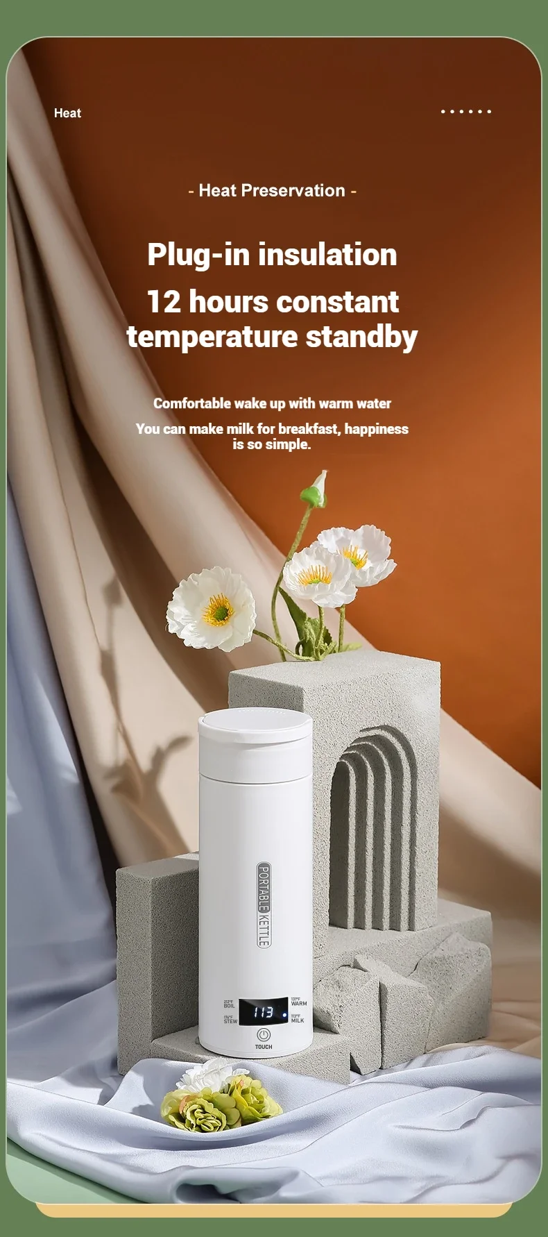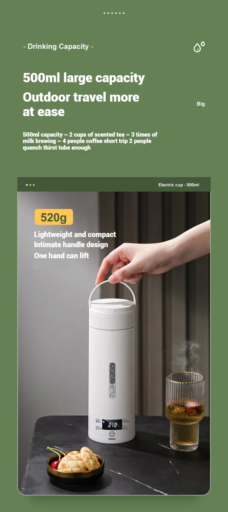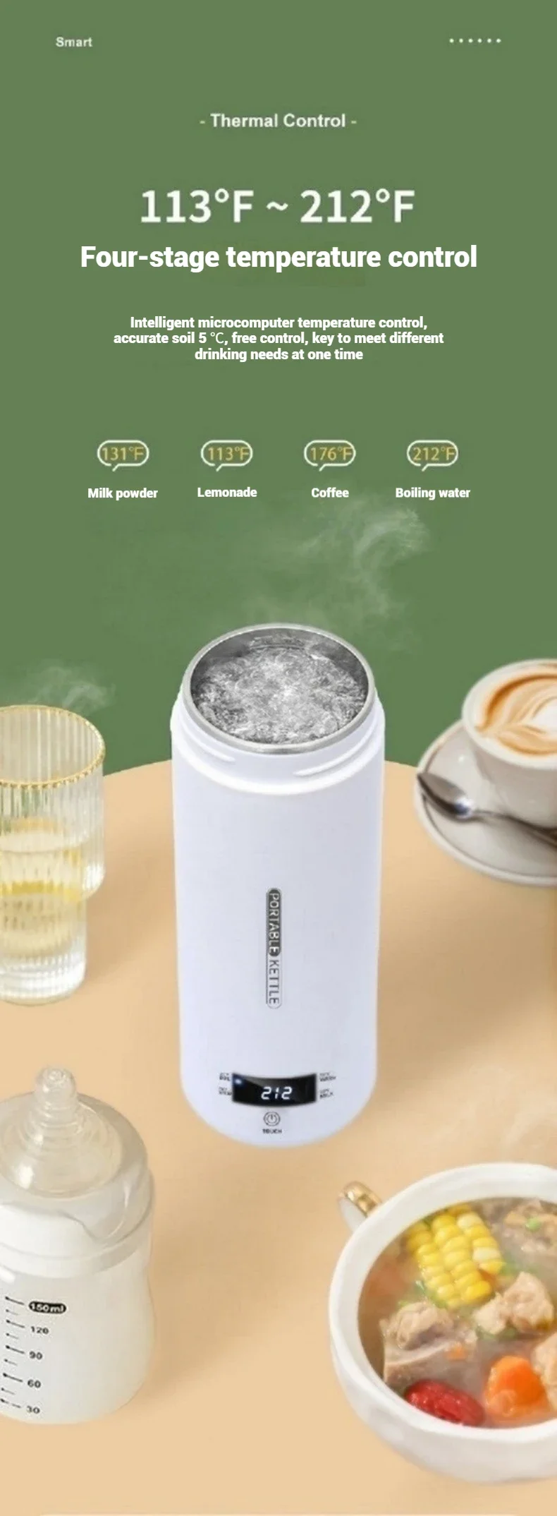 450ML Travel Electric Kettle Fast Boiling Water Portable Thermal Cup baby Milk Warmer Kettle 316 Stainless Steel Thermo Kettles