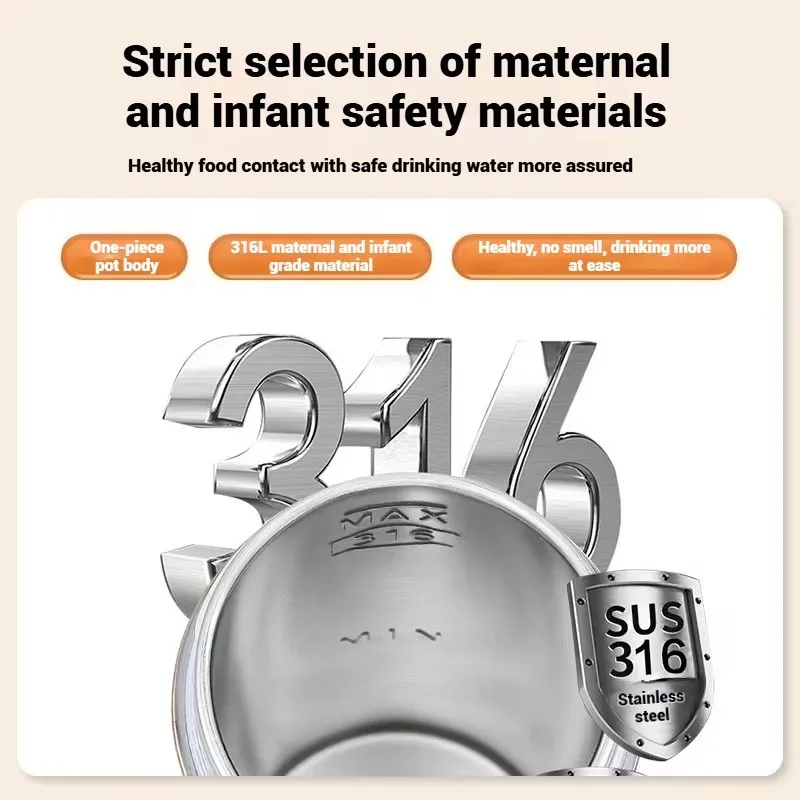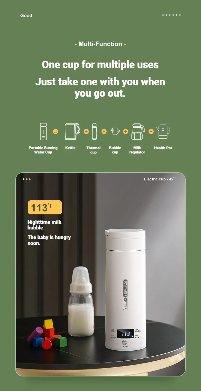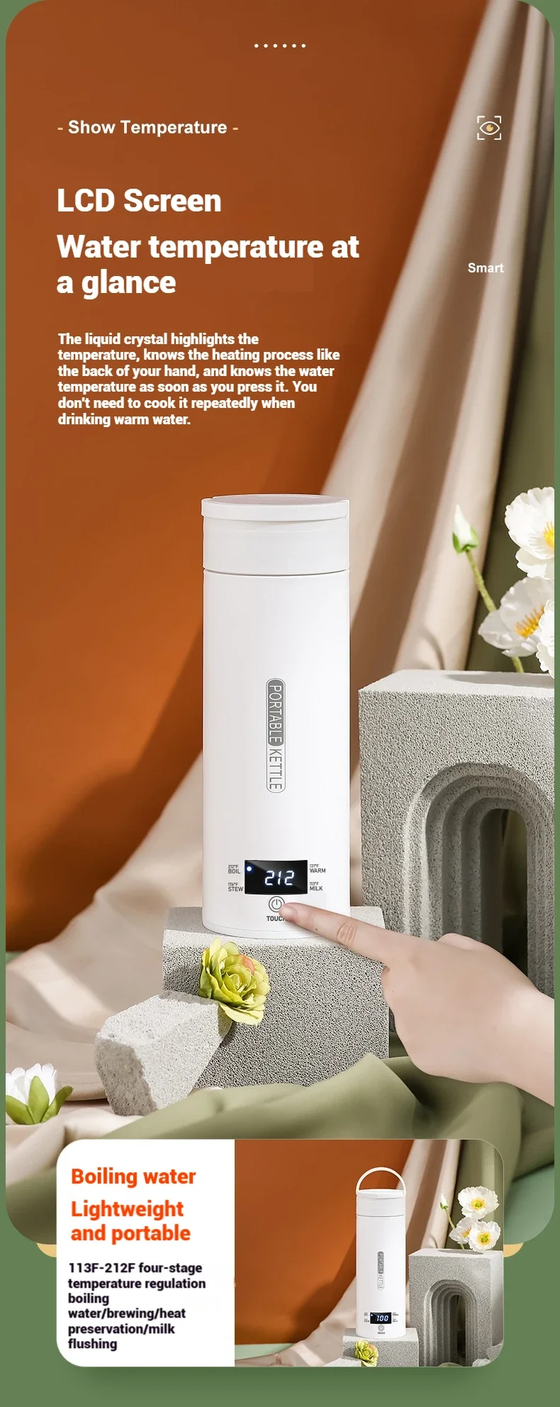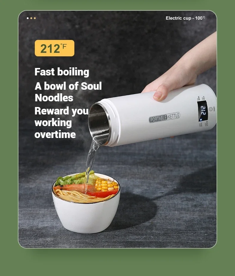 450ML Travel Electric Kettle Fast Boiling Water Portable Thermal Cup baby Milk Warmer Kettle 316 Stainless Steel Thermo Kettles