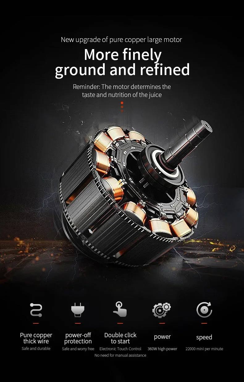 With an 360W motor, travel blender crushes ice or frozen fruits with ease, delivering the power needed to create the perfect smoothie every time. Not only does it have a portable design, but it also boasts a power comparable to that of a plug-in juicer, delivering a silky smooth blending experience.