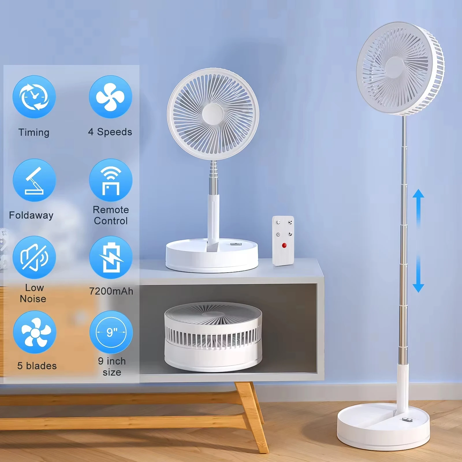 The fan is designed for portability and flexibility. It not only supports height adjustment to adapt to different usage scenarios, but also has a folding function, which is easy to store and carry out