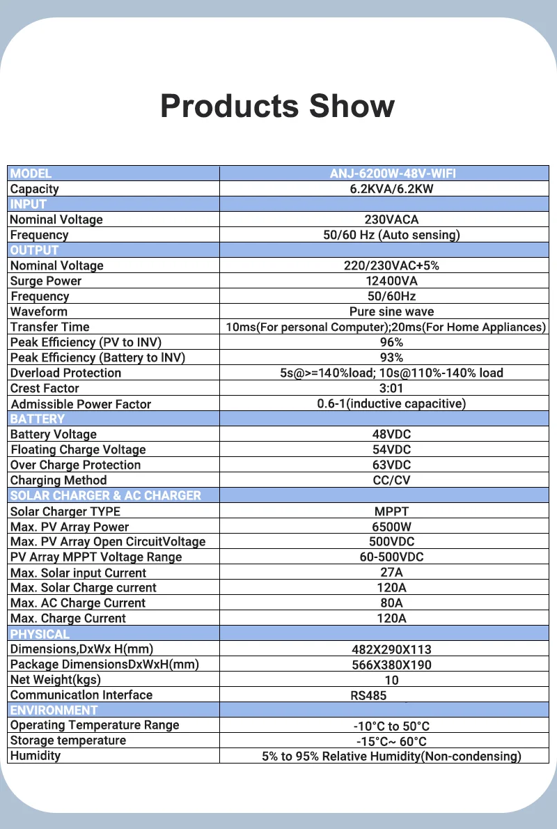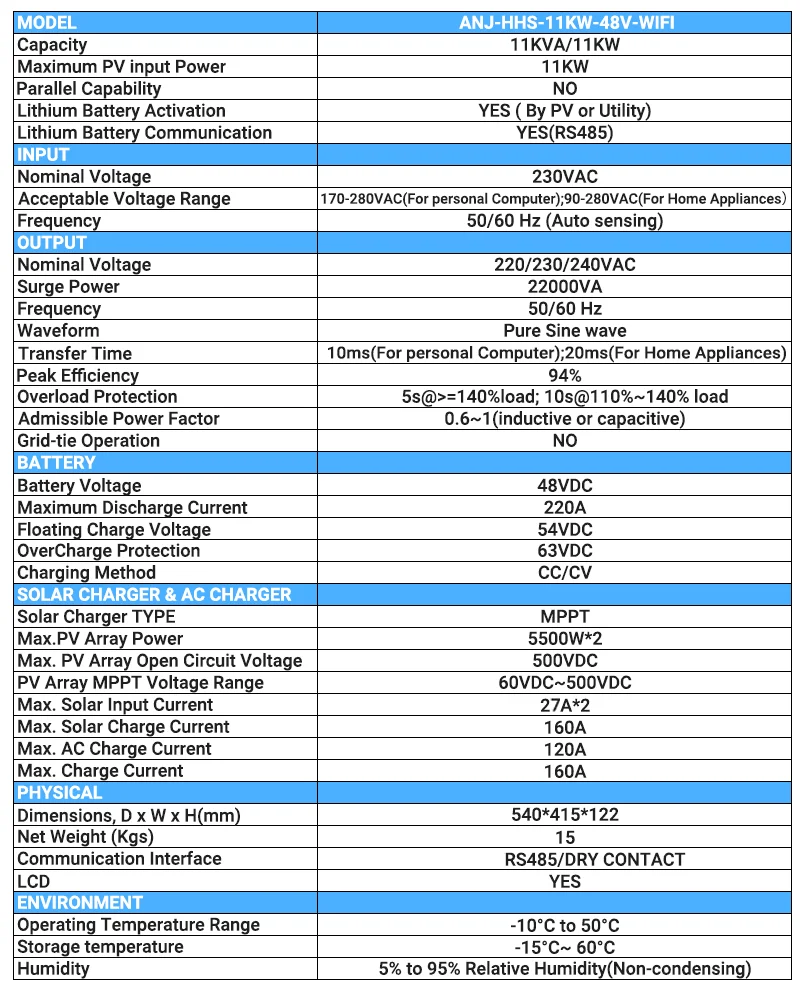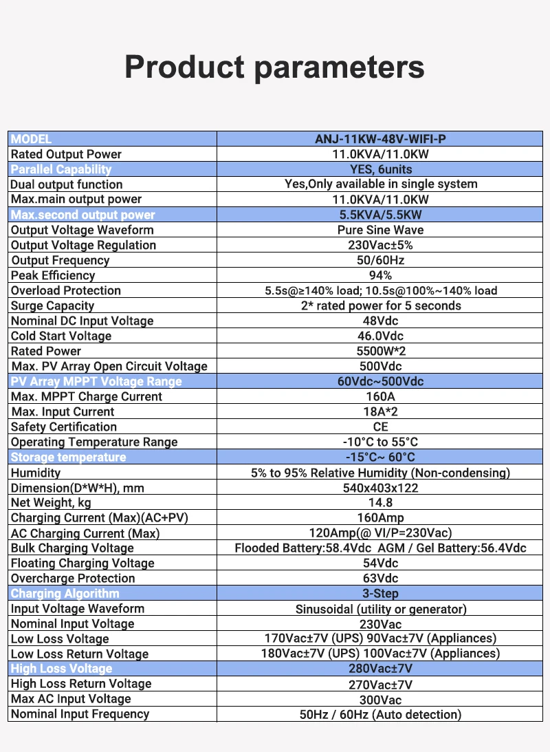 - Model Number: ANJ-11KW-48V-WIFI-P