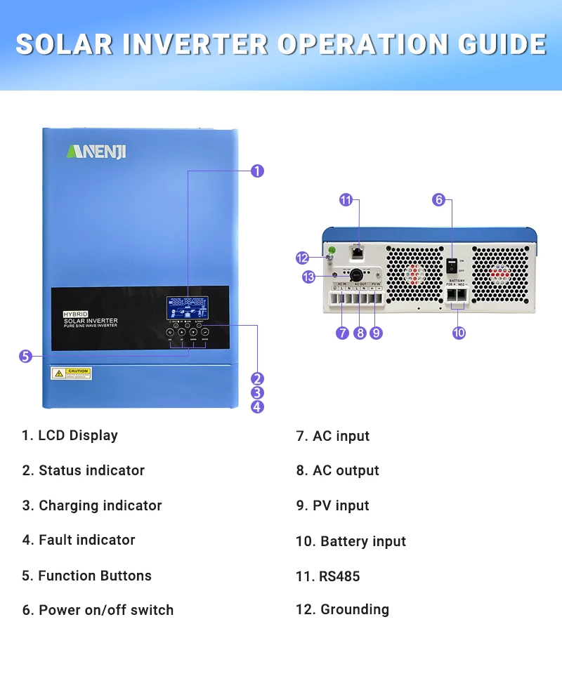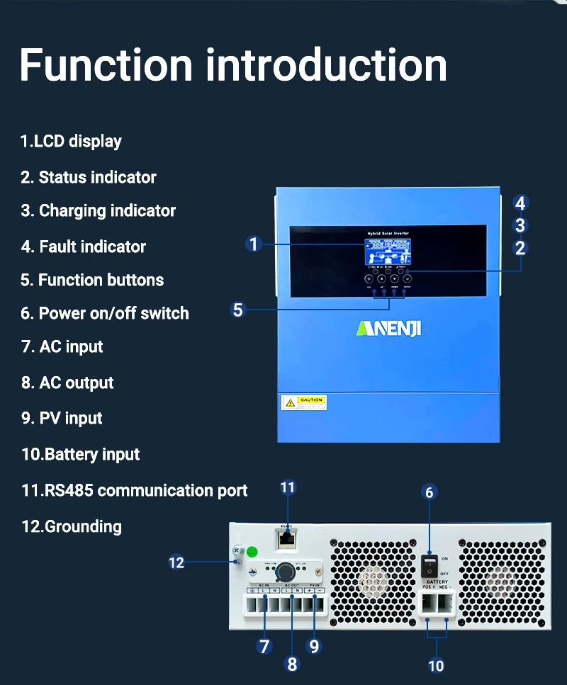 12. Lithium Battery Activation Function: Can be triggered by mains or PV, ensuring efficient activation of lithium batteries.