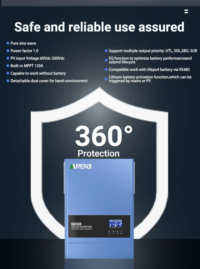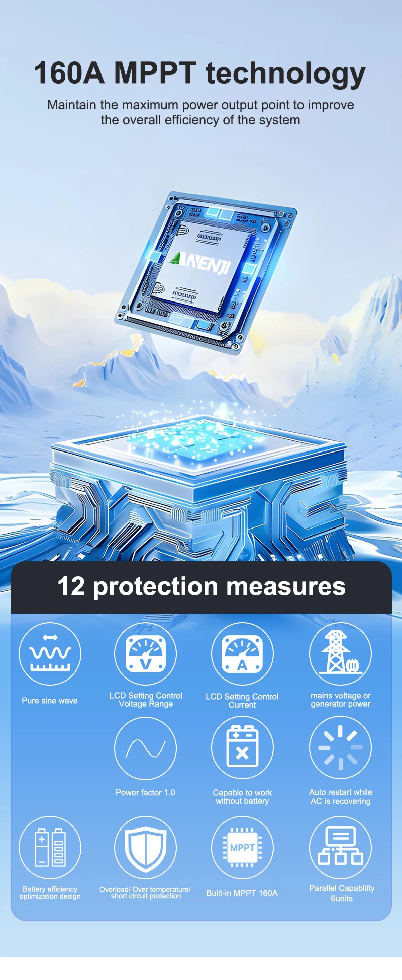 4. Built-in 120A MPPT: Integrates Maximum Power Point Tracking technology to maximize the efficiency of solar panels.