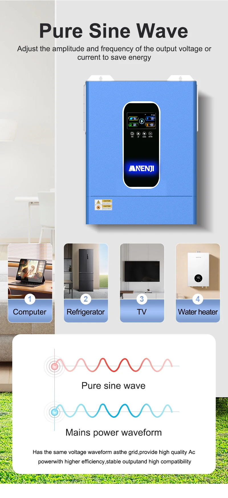 1. Pure Sine Wave Output: Provides stable pure sine wave output, suitable for various sensitive devices.