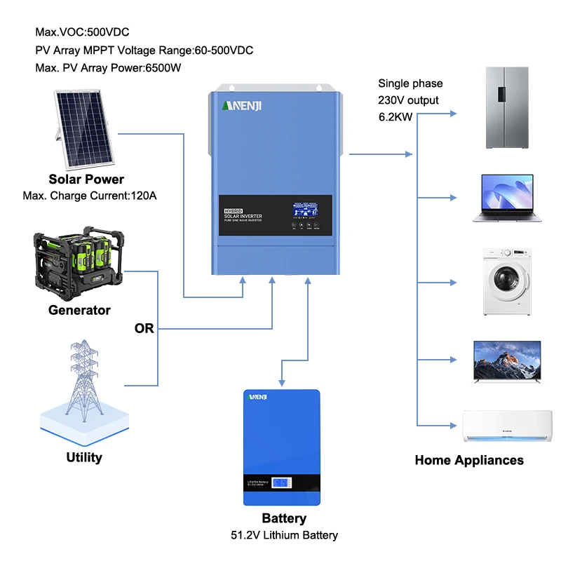Built-in 120A MPPT: Integrates Maximum Power Point Tracking technology to maximize the efficiency of solar panels.