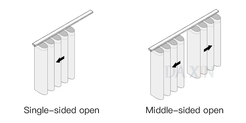 There are two curtain opening methods to choose from: Single-sided open and Double-sided open.