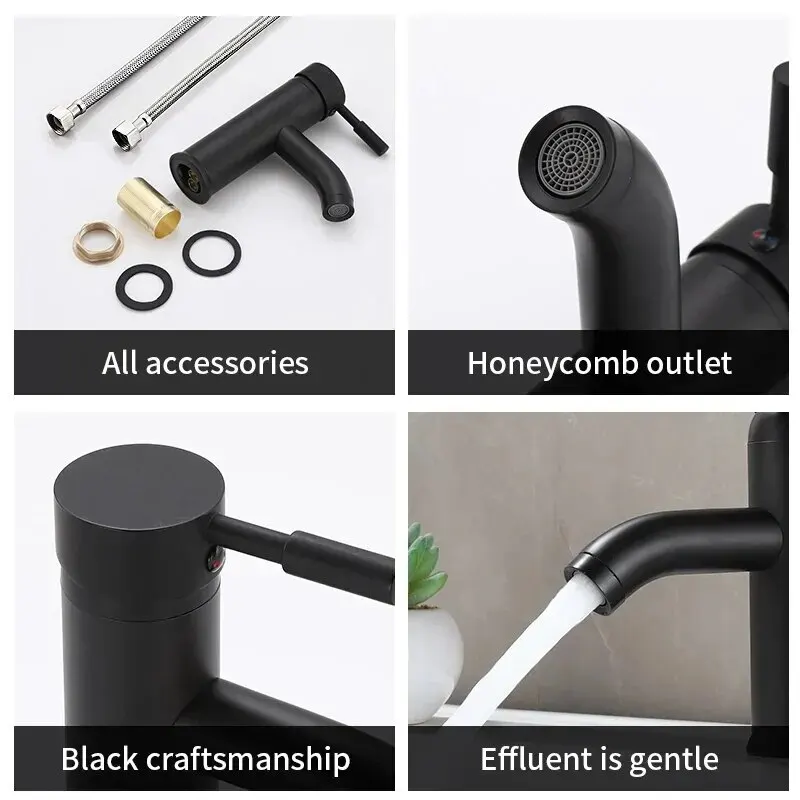 • Single Hole Basin Faucet :Featuring a single hole basin design, this faucet is easy to install and saves space, making it ideal for compact bathrooms.