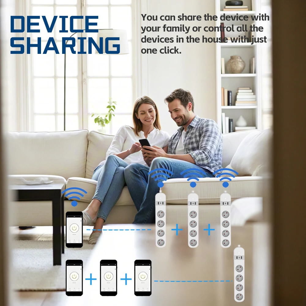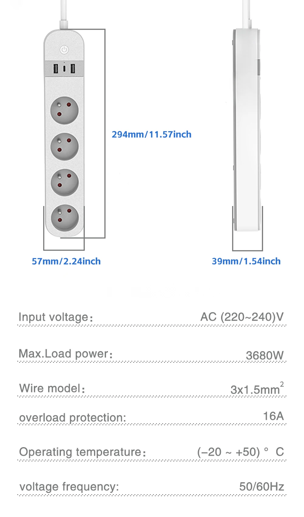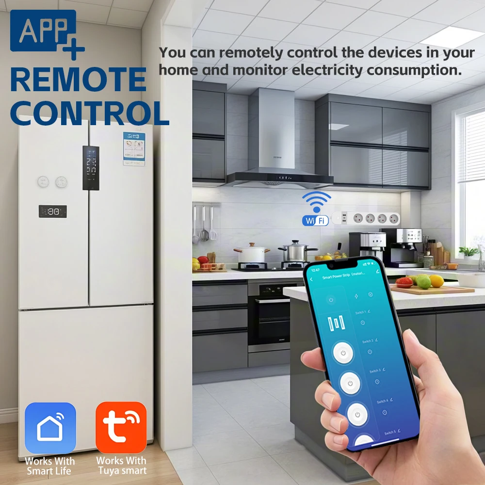 1. This FR plug's WiFi smart power strip has 2 USBs and 1 Type-C integrated control, and 3 AC sockets can be independently controlled. Multiple output ports meet the needs of multiple devices, and energy monitoring or device control can be achieved through Smart Life or Tuya Smart applications, saving money.