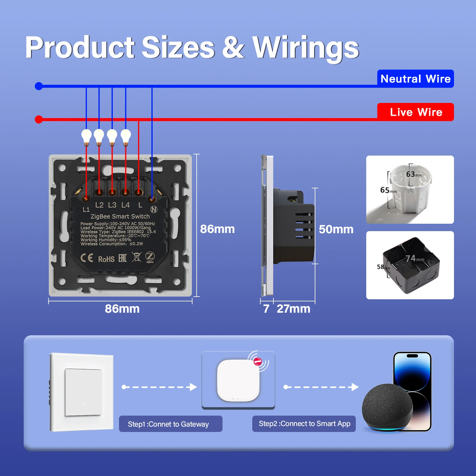 - Material: Glass Panel & Iron Plate & Plastic Switch Module