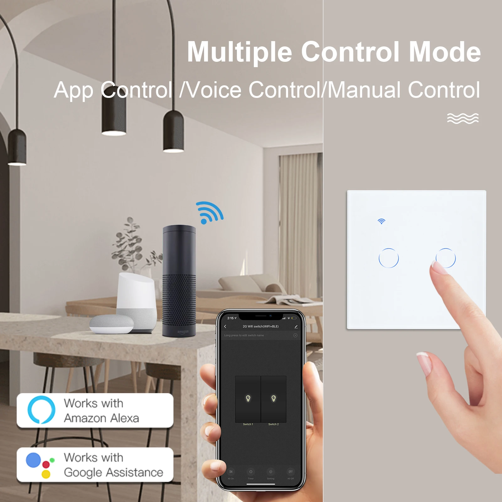 BSEED 1/2/3Gang Wifi Touch Switches With Capacitor 2Way For Stairs Corridors Lamps Tuya Smart Life Alexa App Control 2Pack