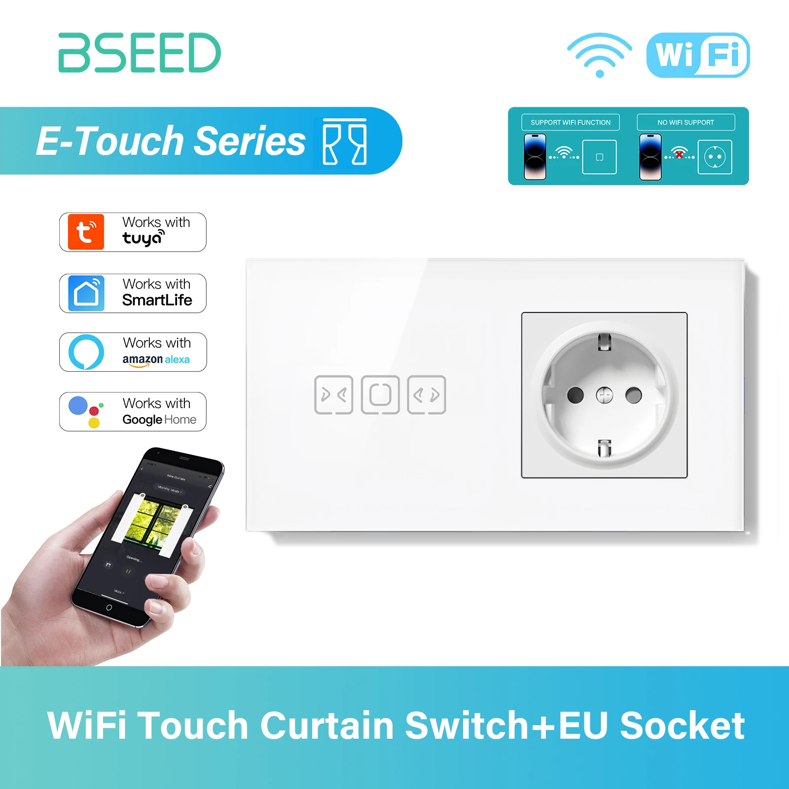 Easily manage your home's ambiance with the BSEED WIFI Curtain Switch, a smart device controlled via Tuya APP for convenience.