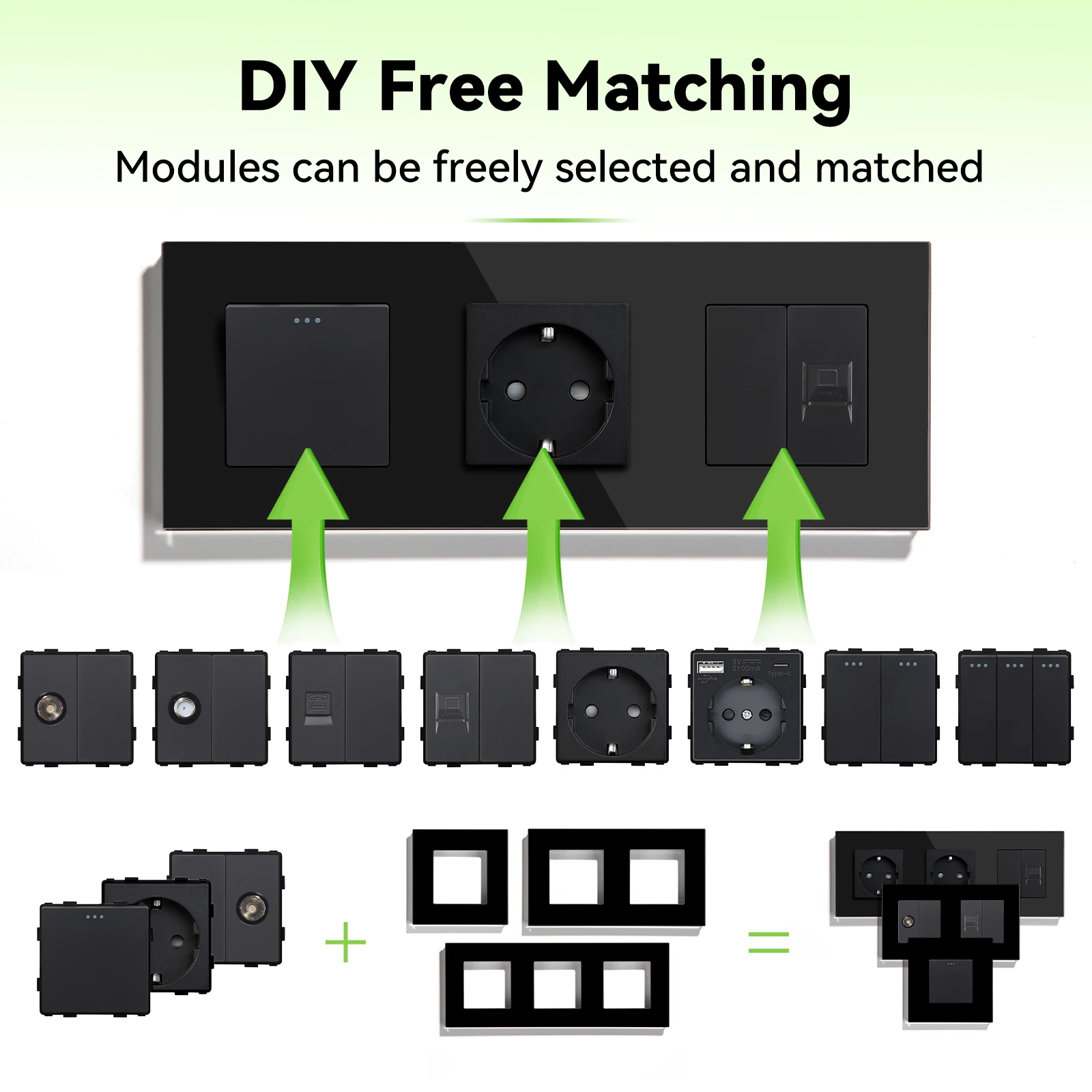 BSEED Wall Socket Glass Frames EU French Power Socket Type-C USB Plug Mechanical Light Switches Function Parts Free Combine
