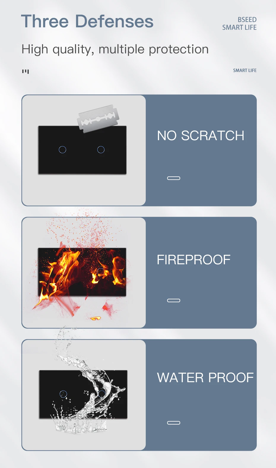 2.Our Wifi home socket and switch are Fireproof and Waterproof. Protection Against Electric Shock for Your Family.