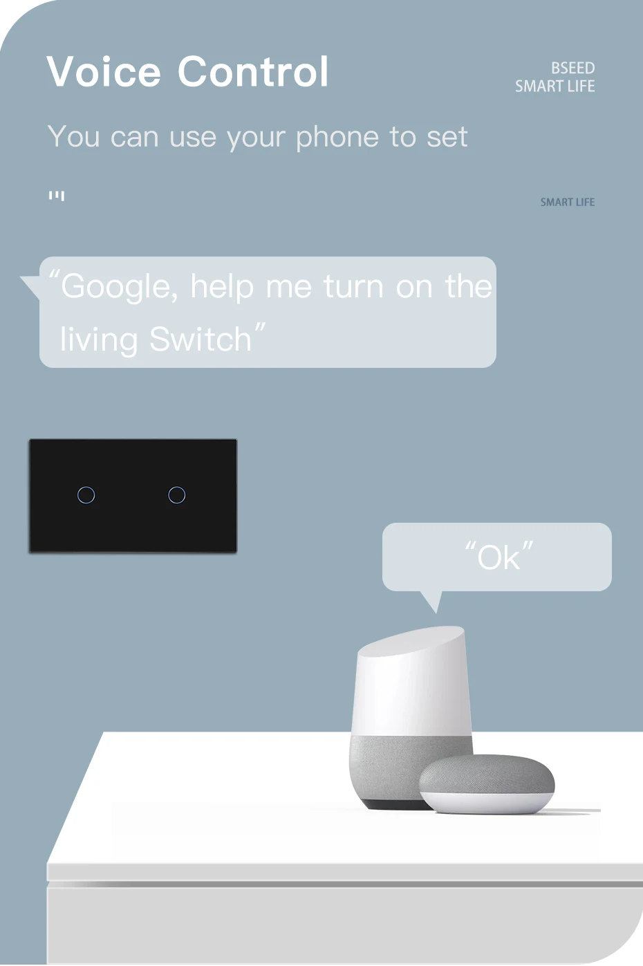 BSEED Wifi 1/2/3Gang Light Switches Touch Sensor Glass Switch Tuya Smart Life Alexa Control Plus EU Sockets Need Neutral Wire