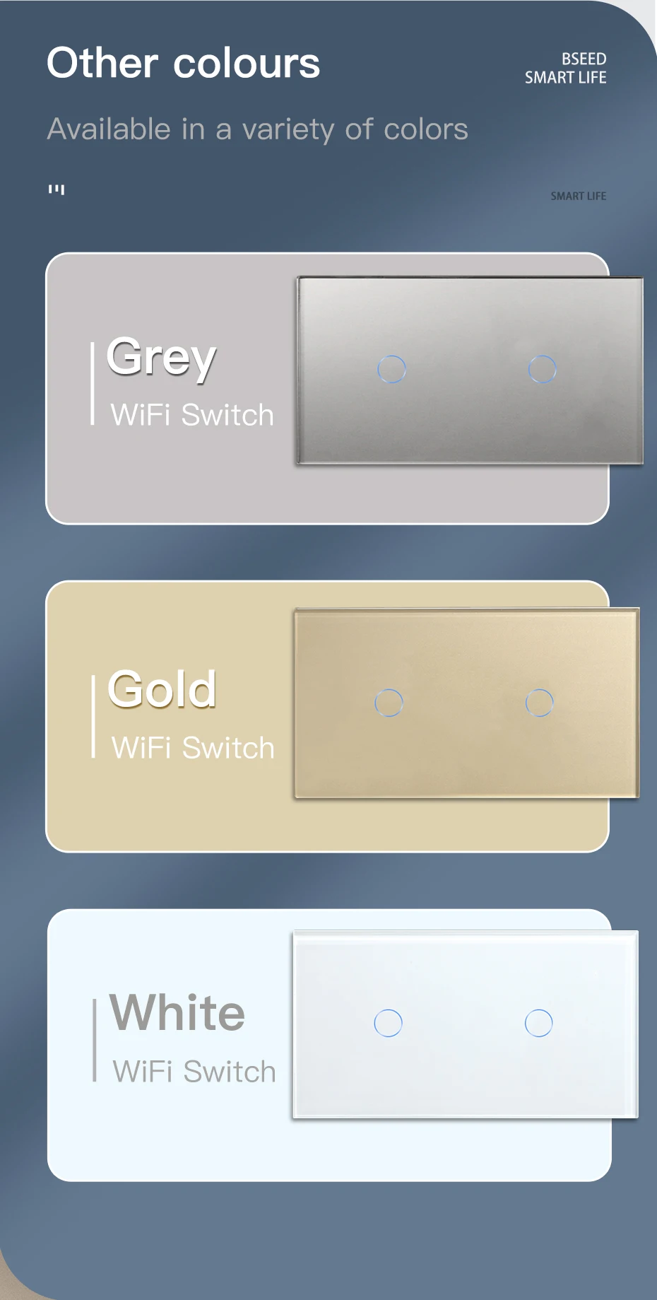 A:The blue backlight will be on when the wiring is successful. Allowing you to notice Our touch switch clearly in the dark.and the backlight can be cancelled in the App.