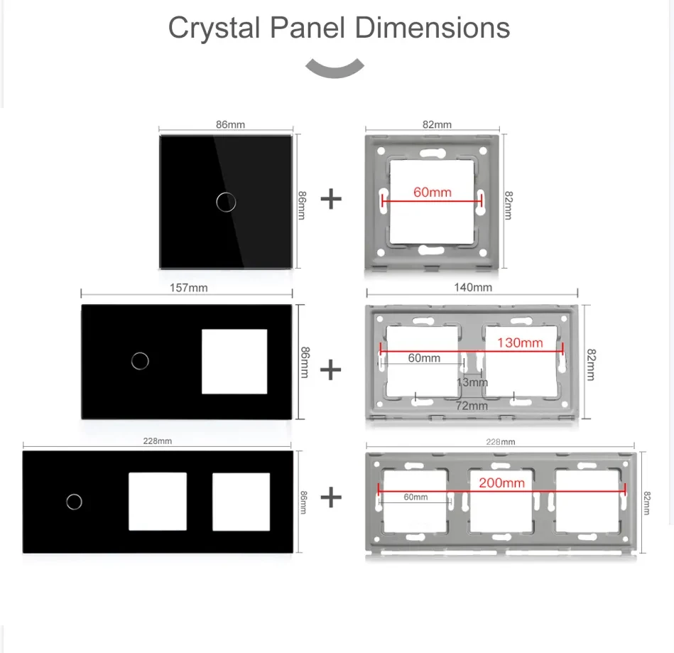 - Material: Glass Panel & Iron Plate & Plastic Switch Module