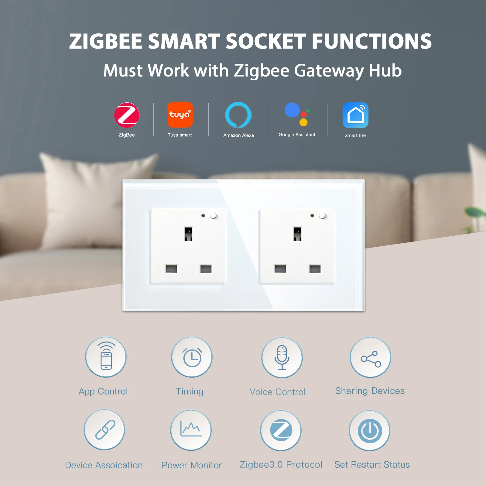 BSEED Zigbee Single UK Smart Socket Double Intelligent Wall Sockets Triple Electric Outlets Tuya Smart Life Alexa Control 13A