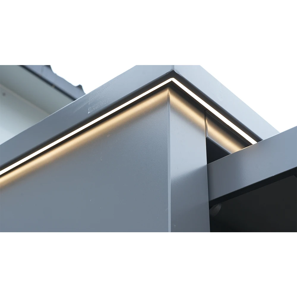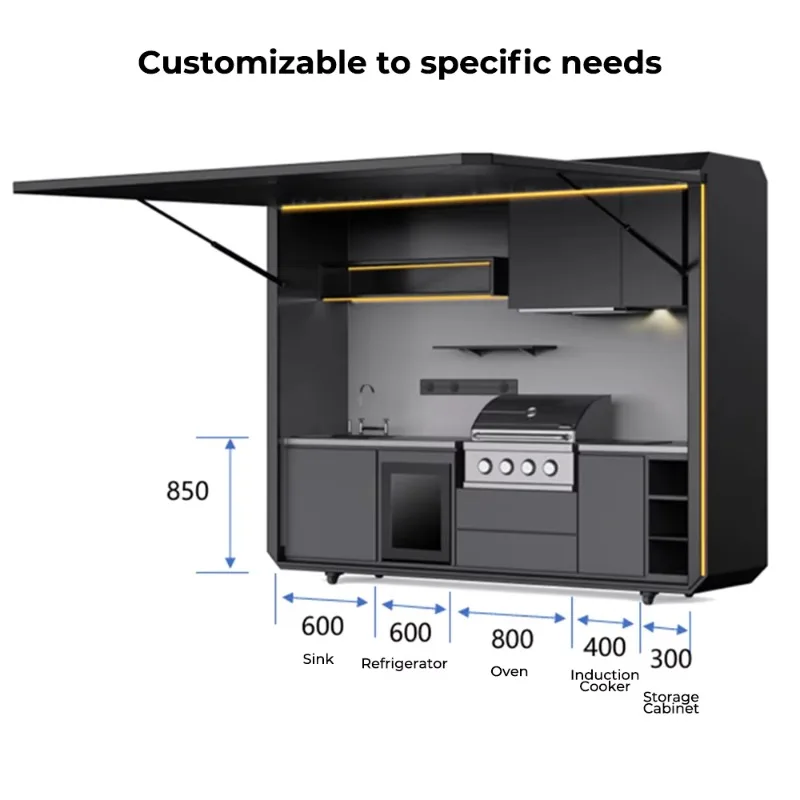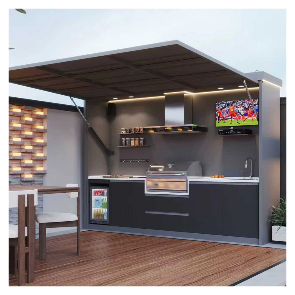 The modular design allows flexible configuration to suit different spaces and usage needs. Smart storage solutions maximize organization, while built-in lighting enhances visibility and creates an inviting atmosphere for evening use. Durable, weather-resistant materials ensure long-term performance in various climates.
