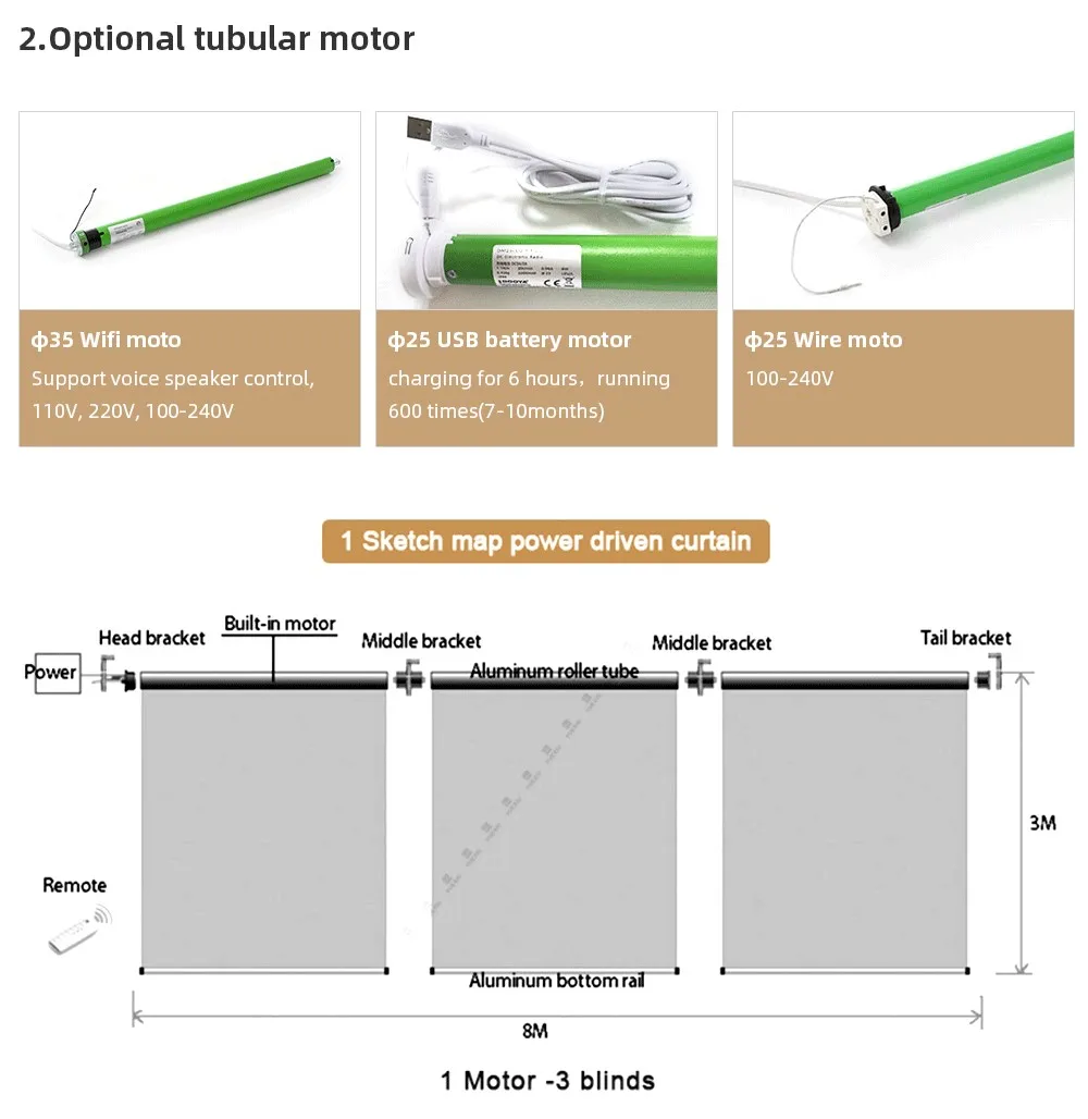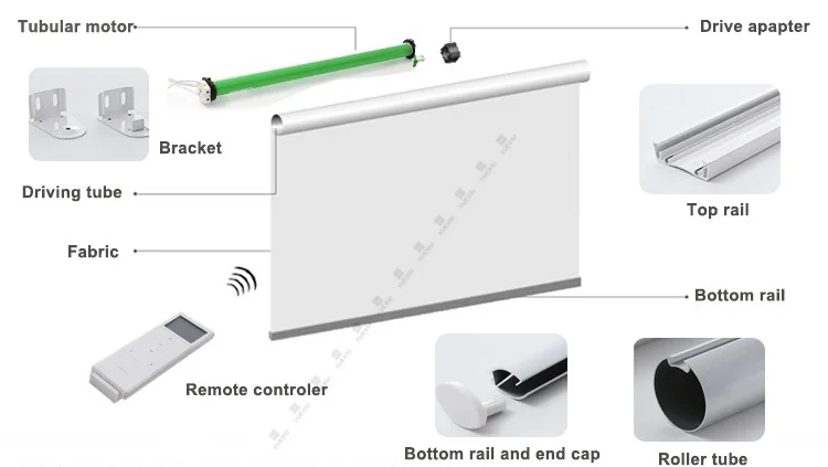 Indoor window blinds Electric remote control motorised Roller Blinds