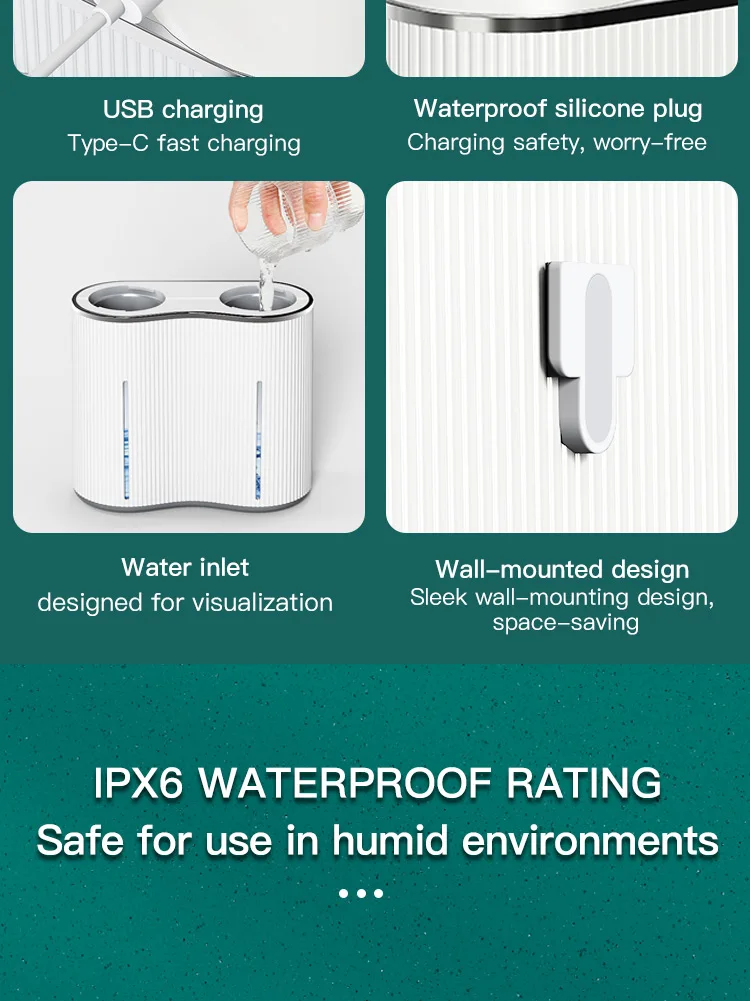 Elegant Design with Digital Display: Features a sleek white design that complements any decor. The digital display enhances user experience by showing battery levels and soap dispensing settings, making it both functional and stylish. Its IPX6 waterproof rating ensures durability against moisture and soap spills.