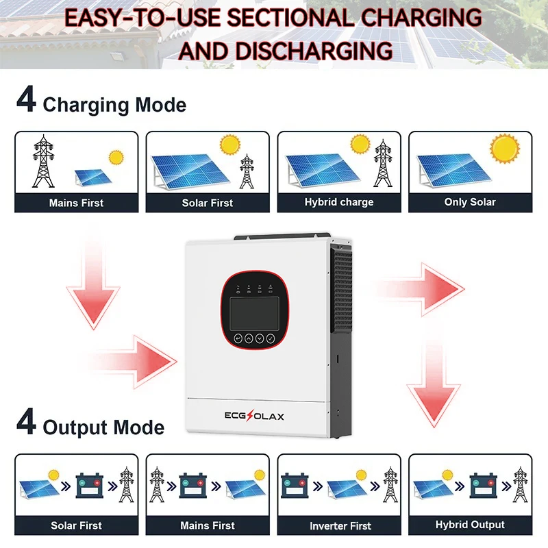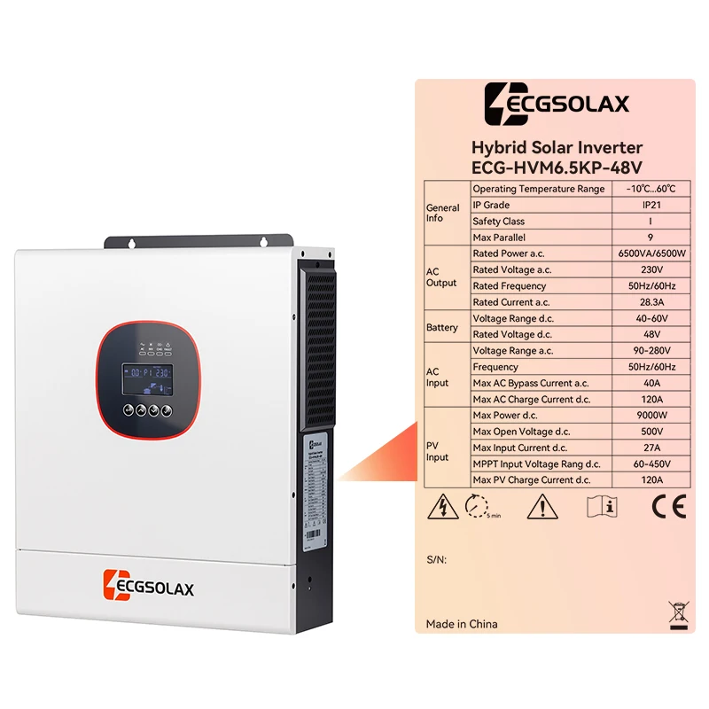 ECGSOLAX 6.5KW Solar Hybrid Inverter 48V 230V With MPPT 120A Charge Controller Off-grid Solar inverter Built-in WIFI Max PV 500V