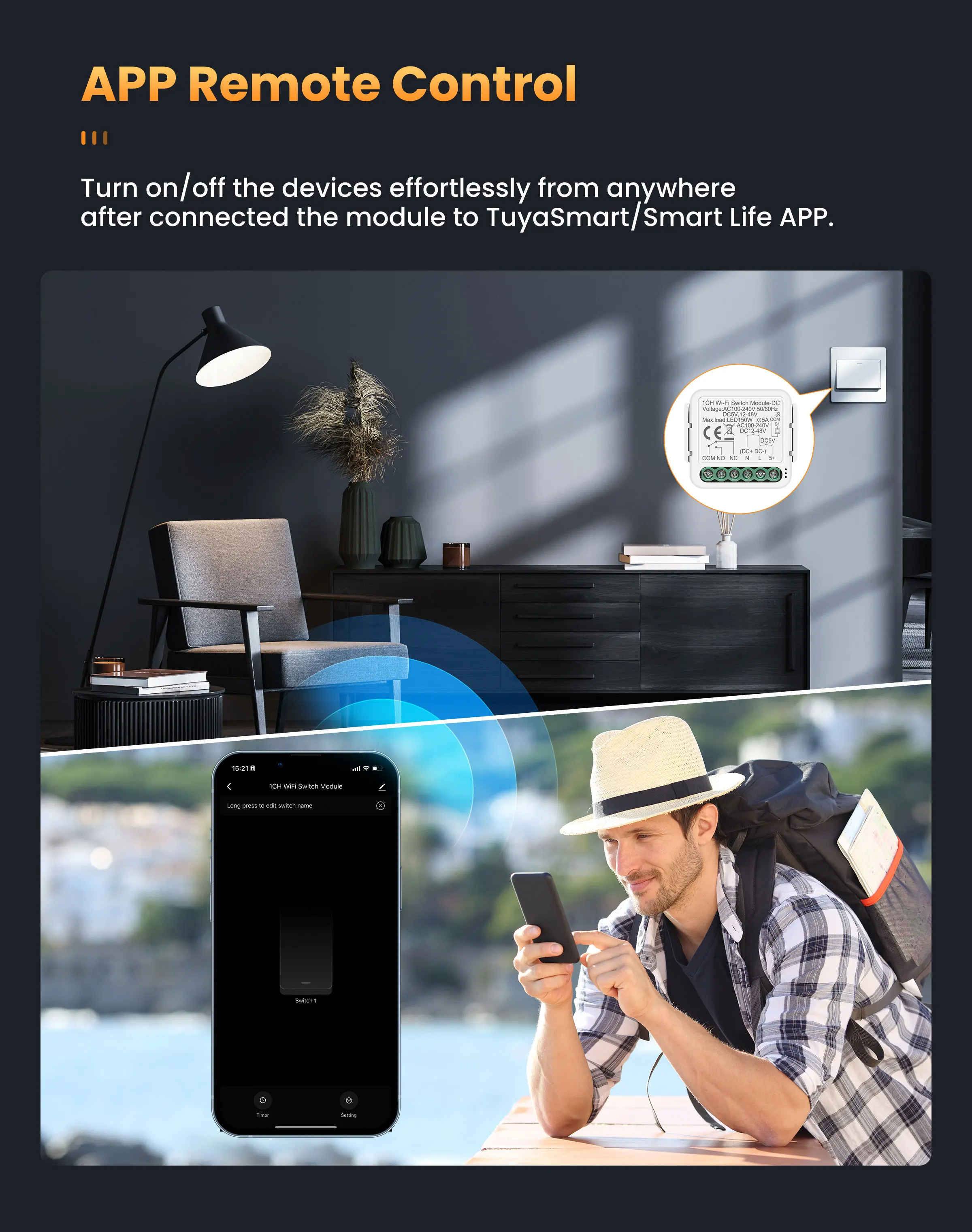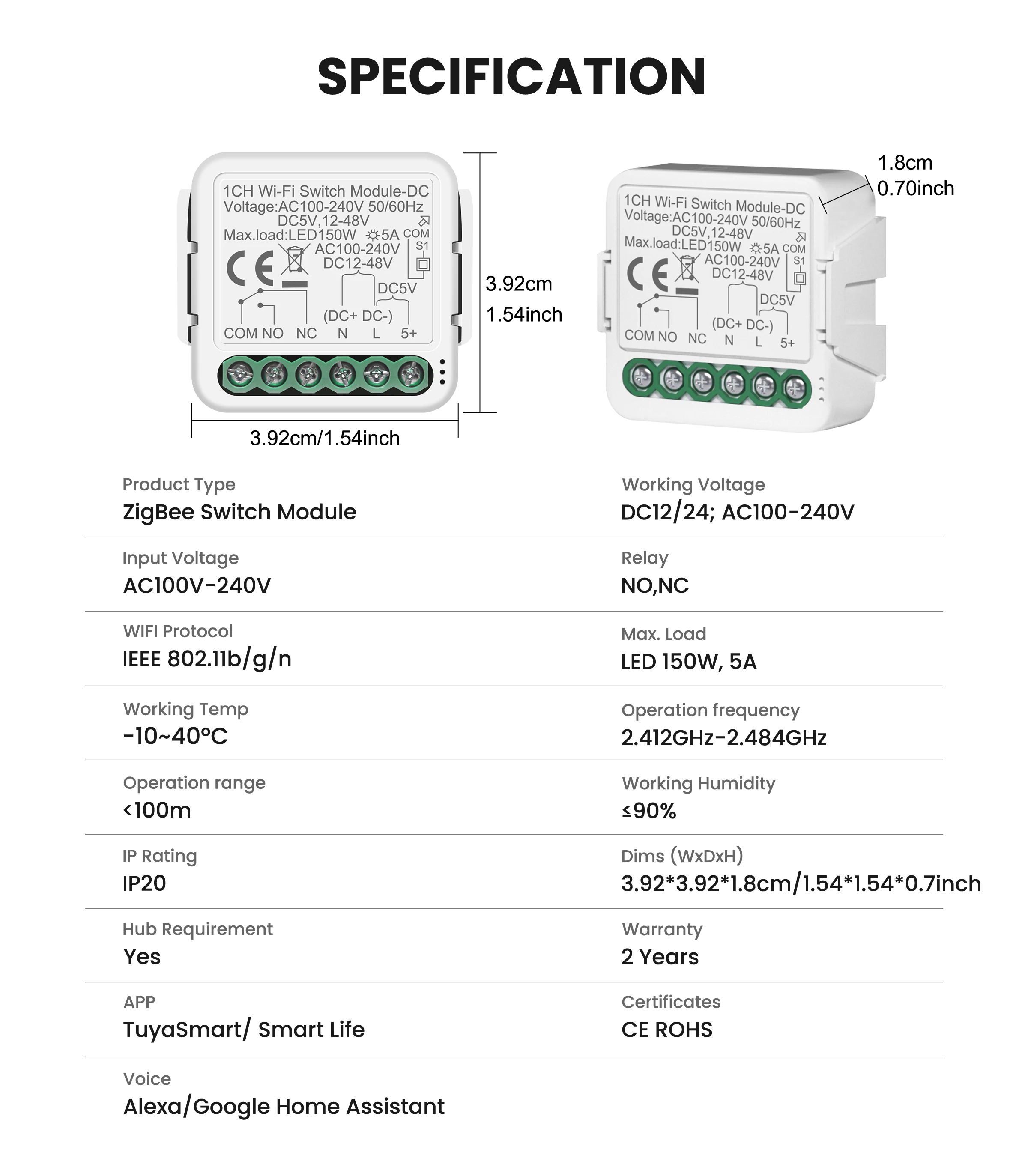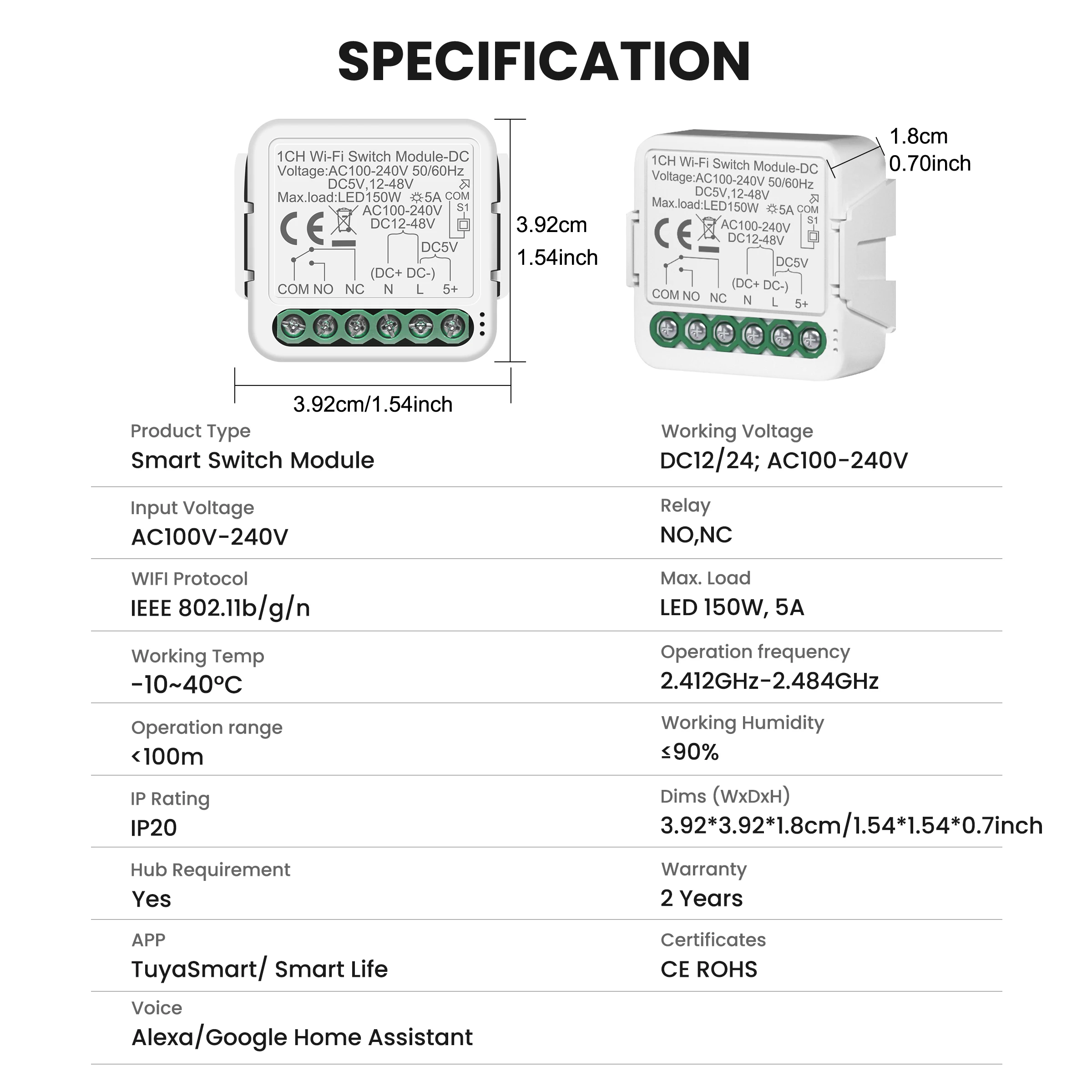 - Product Type: 1CH/2CH WIFI Switch Module-DC