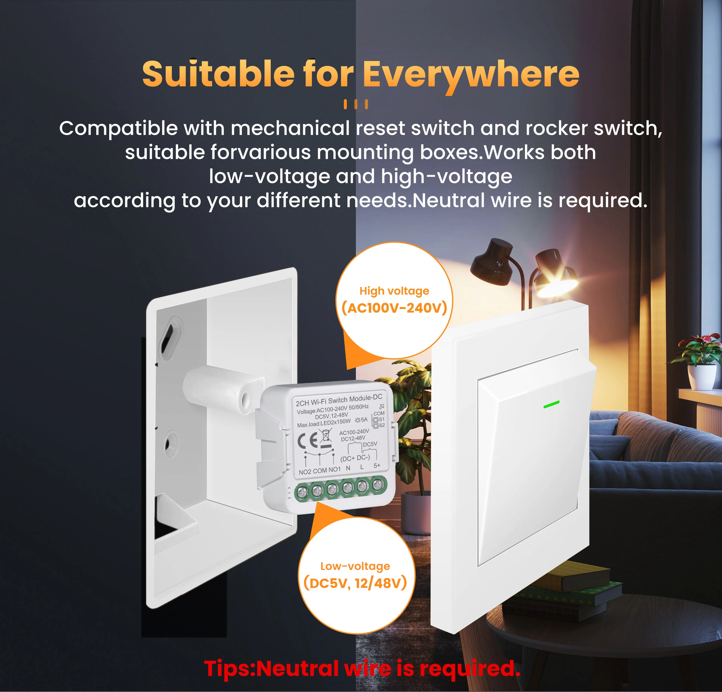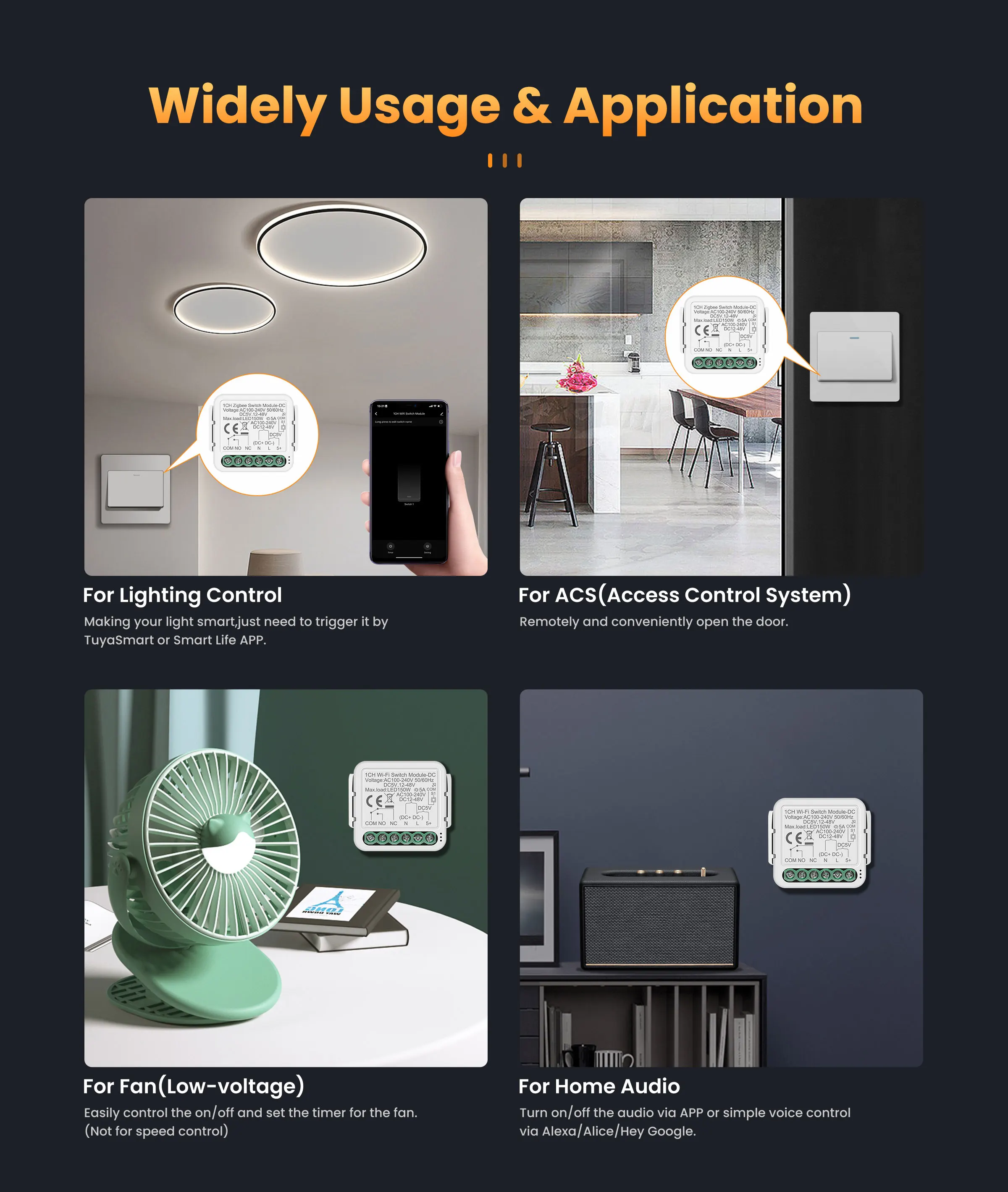 Smoothly handles both AC (100-240V) and DC (12V-48V) sources. Perfect for everything from low-voltage sensors to high-voltage appliances-way more versatile than AC-only modules.