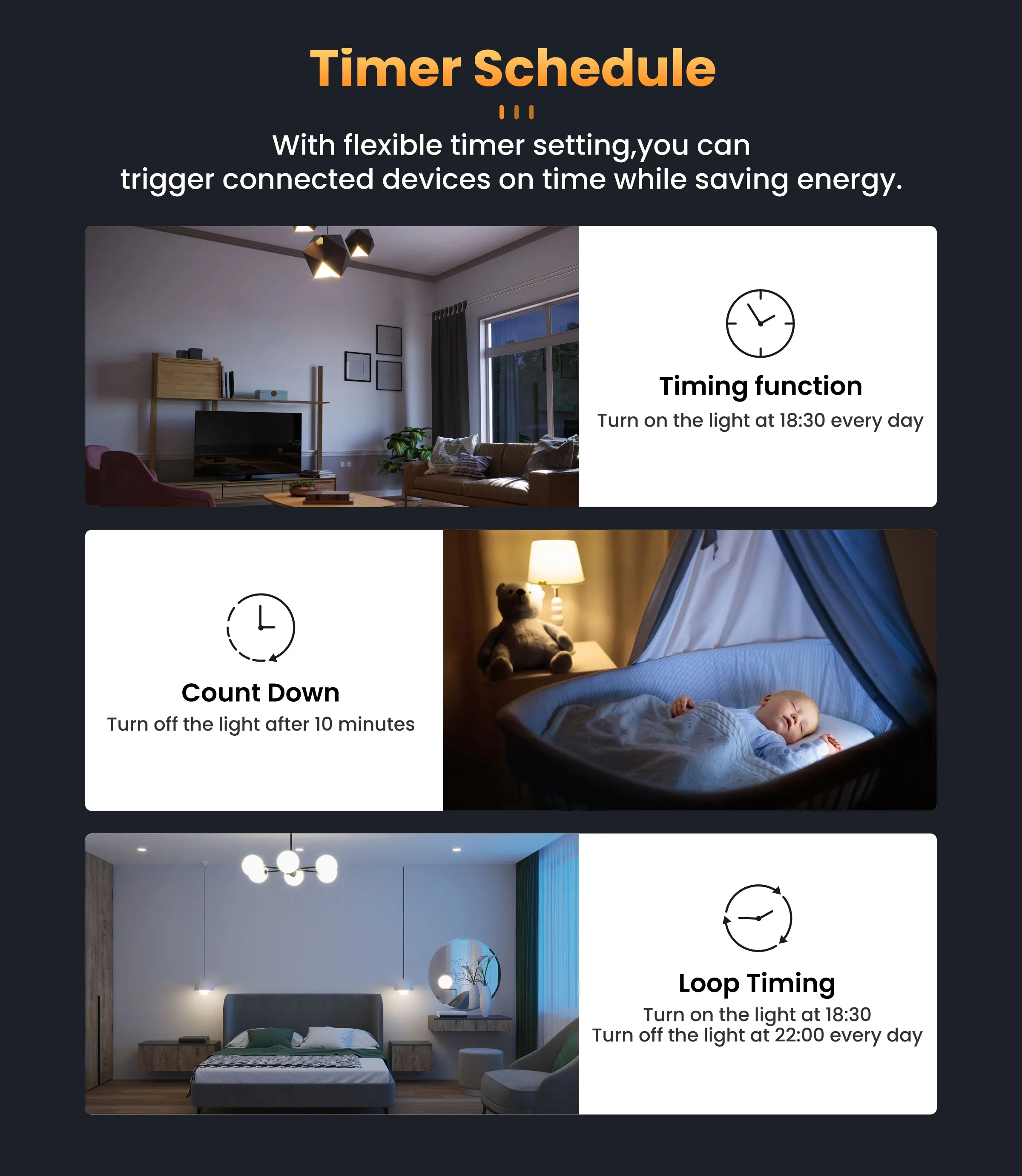 Connect straight through the TuyaSmart or Smart Life app-no hub required. Turn devices on/off, set schedules, or sync with other smart gear from anywhere, whether you're at work or on vacation.