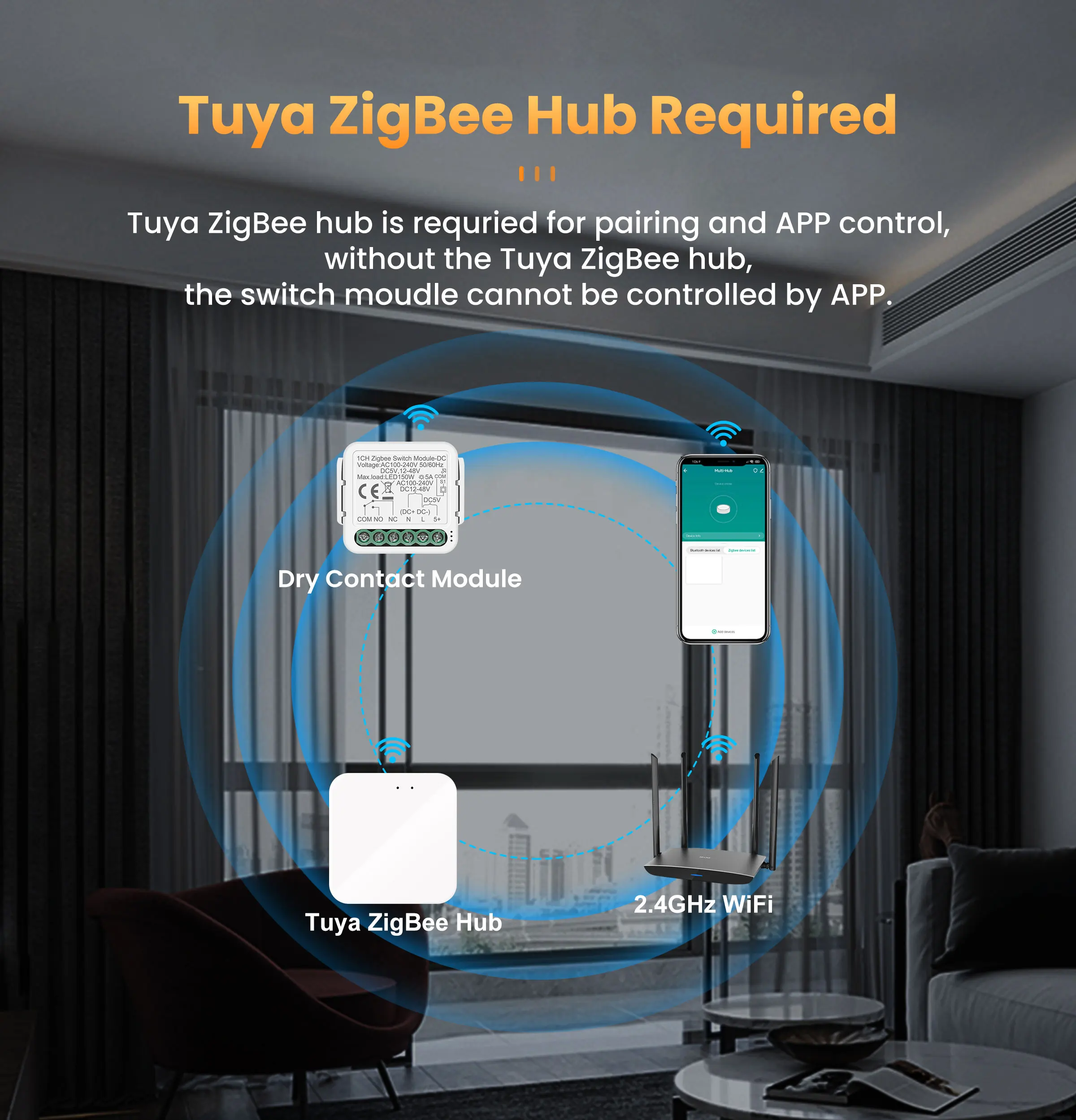 2.Tuya ZigBee devices are Tuya ZigBee required for pairing and APP control.