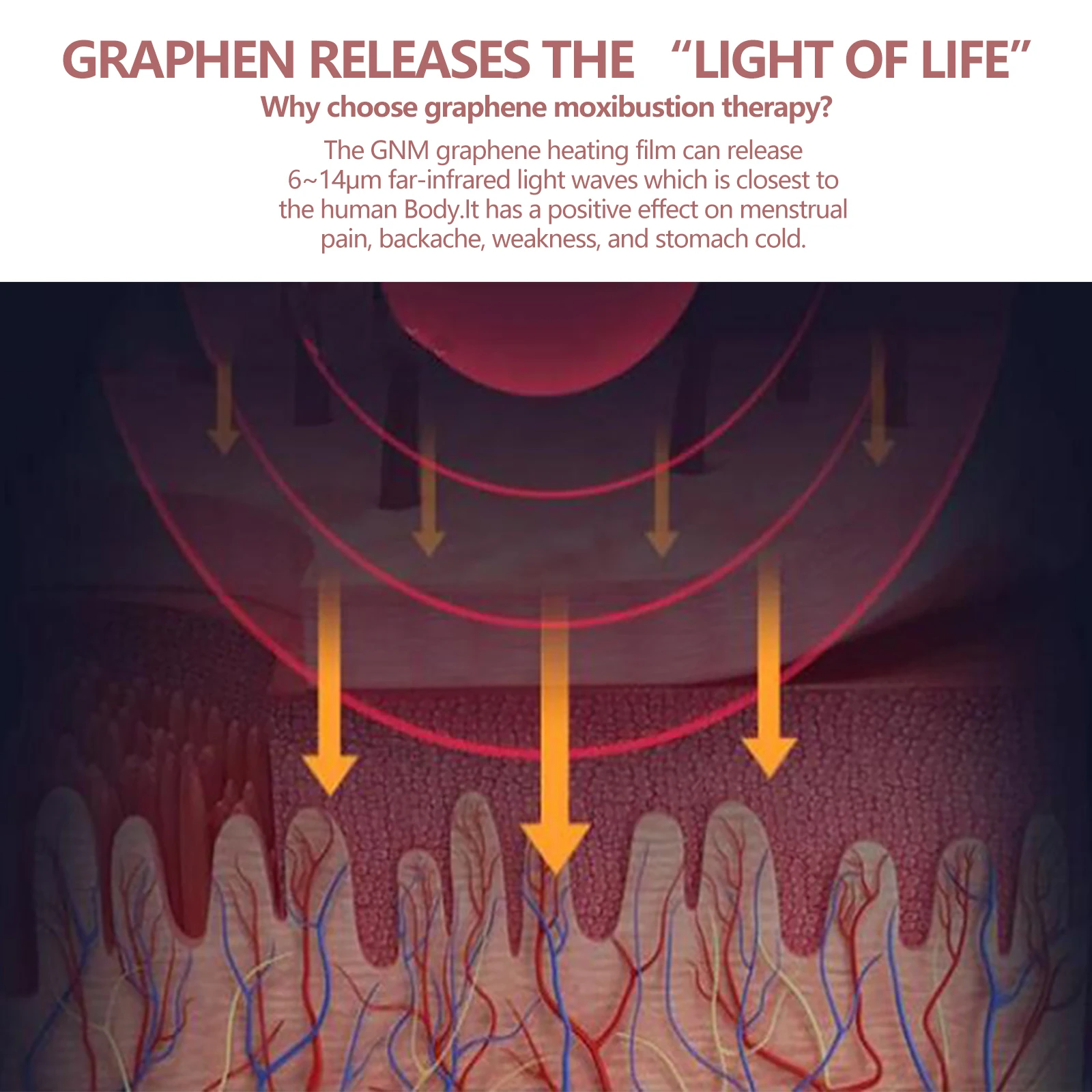 The GNM graphene heating film can release 6~14μm far-infrared light waves which is closest to human body.it has a positive effect on menstrual pain ,backache ,weakness and stomach cold