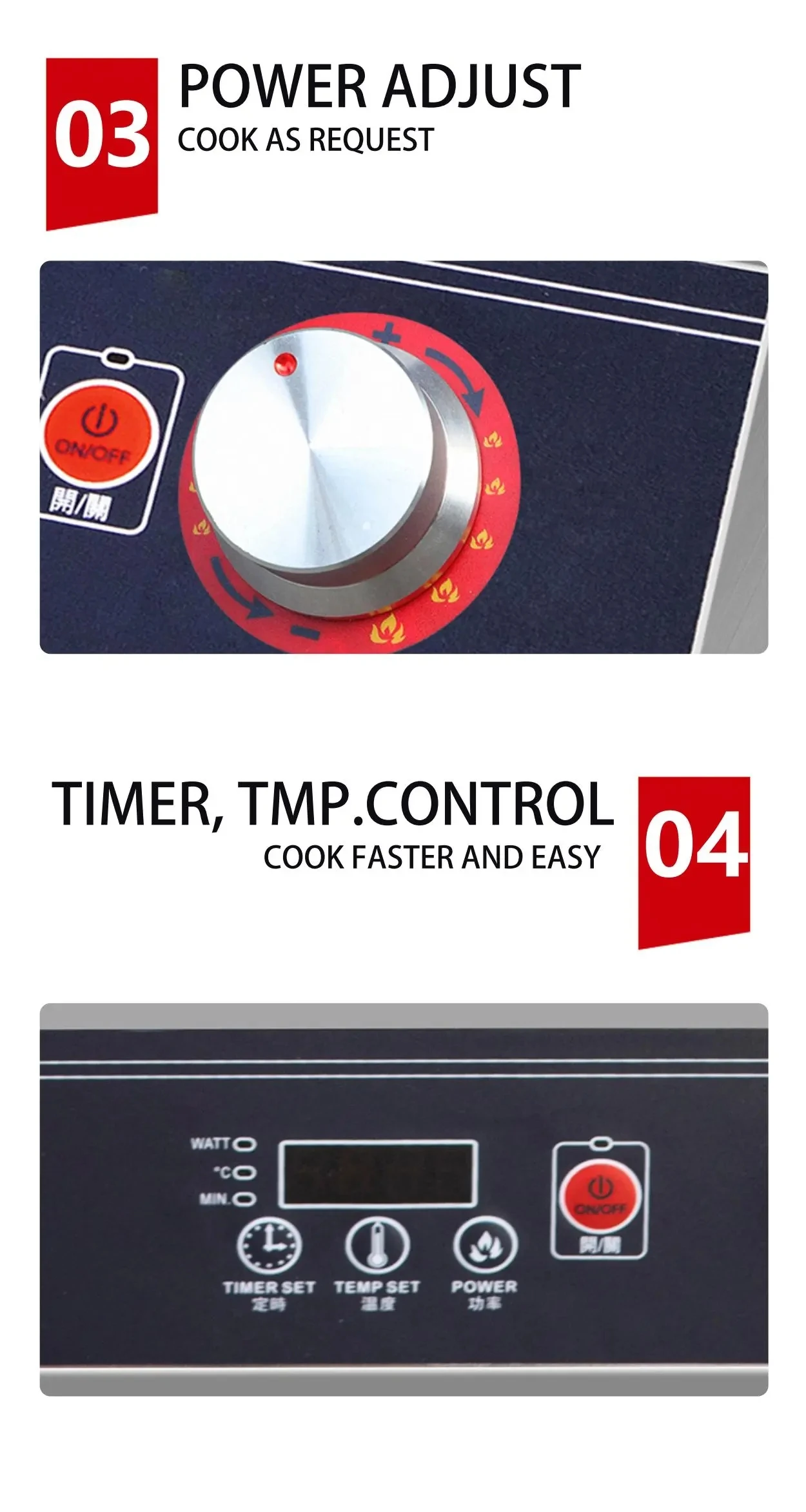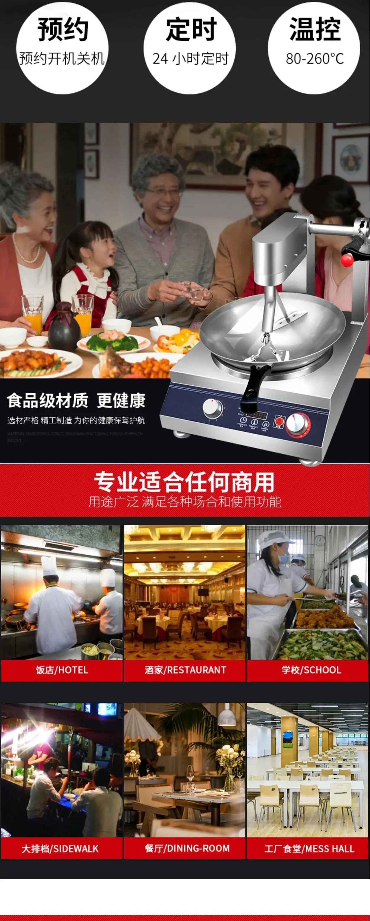 This fully automatic fryer adopts a concentrated concave design, with a more uniform heating surface and a more uniform taste; Double rotating head rotary stirring, 5-speed controllable; Stainless steel body, waterproof design; Appointment timing, intelligent temperature control. Various delicacies. Cook as you please.