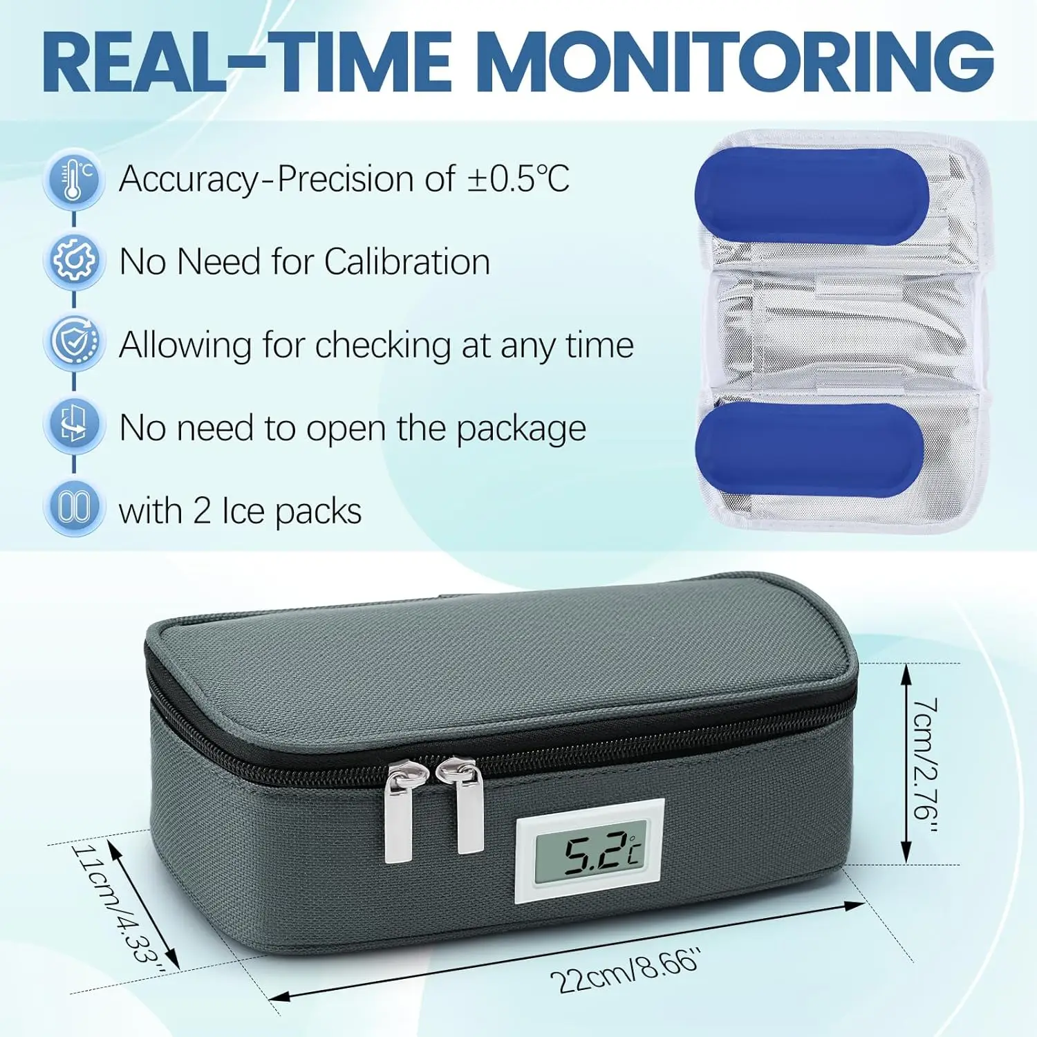 ✅ Equipped with precise temperature sensors and LED displays, the insulin cooler can display the internal temperature in real-time.