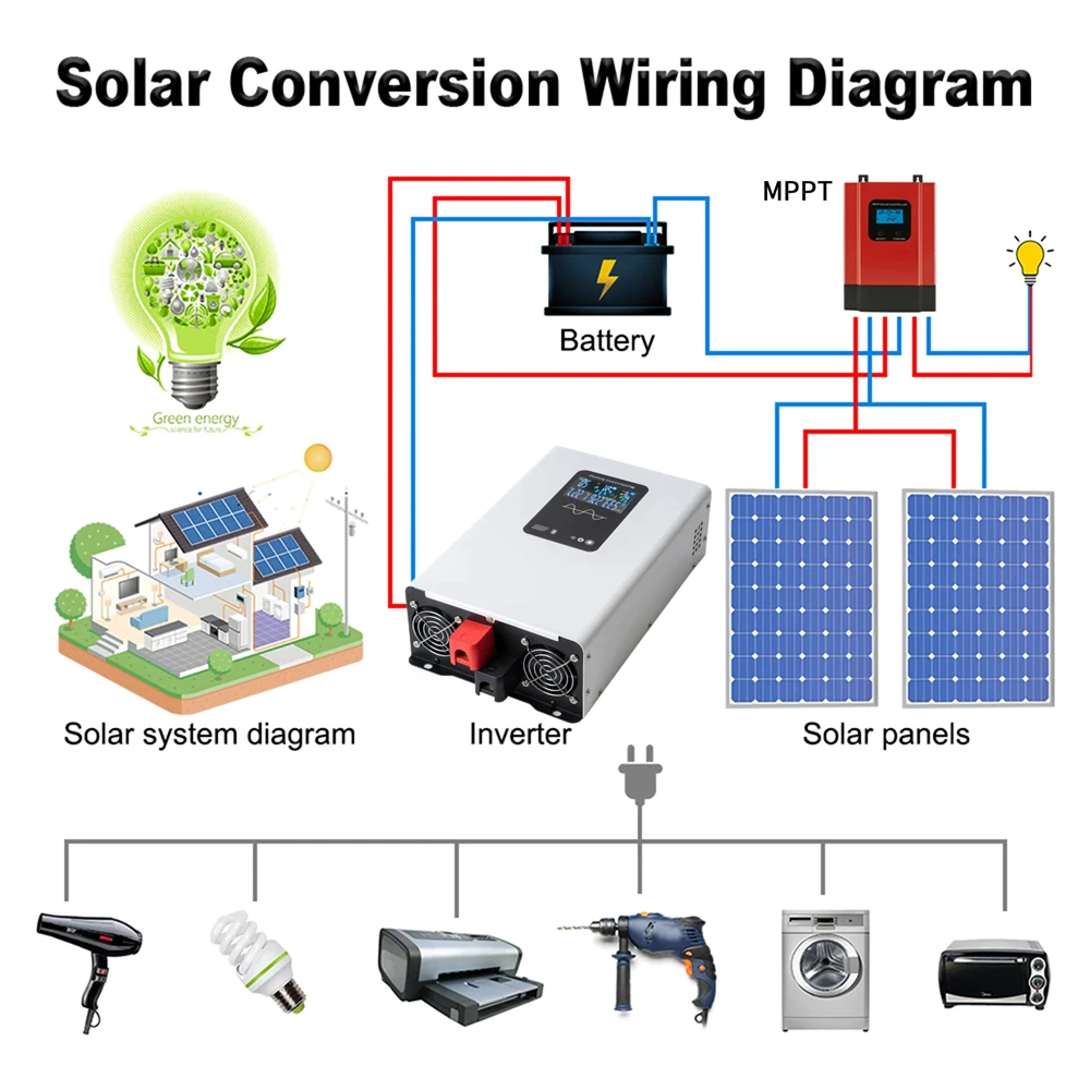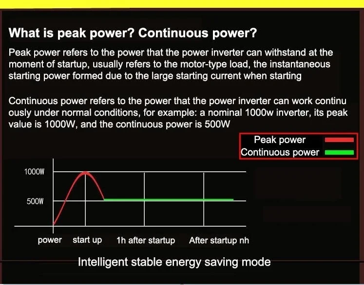 6. Please do not overload. If your applications are inductive loads, please choose the inverters whose continuous power is 3-7 times higher than the watts of your appliances. such as fridge, icebox, drill, washing machine, water pump, microwave oven, oven, vacuum cleaner, hair dryer, etc. with motor inside. Please make sure the constant power of our inverter meets your need before order, or consult us for more details.