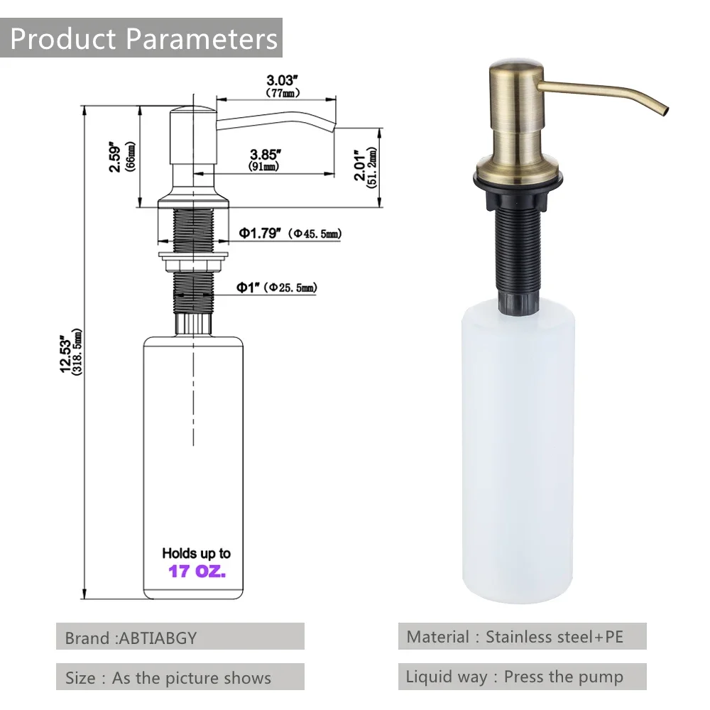 * Easy installation : large bottle capacity(500ml),can refill with liquid soap-need rather removing the bottle, it just takes only a few short minutes to install it.Refill from the top no more crawling under the sink!