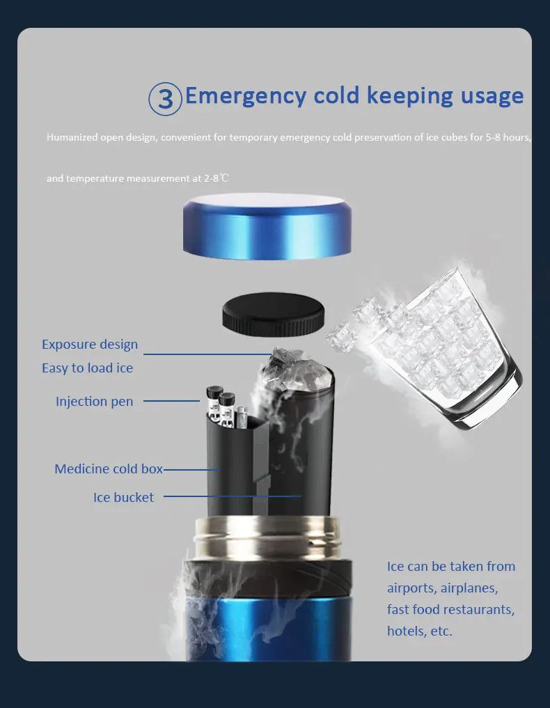 LCD Insulin Refrigerated Cup Portable Outdoor Cooler Flask Mini Vacuum Medicine And Beverage Refrigerated Drug Cooler Fridge