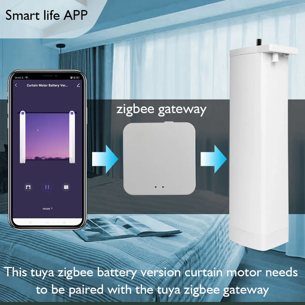The Tuya Zigbee smart battery version curtain motor needs to be used together with the tuya zigbee gateway. If you already have a tuya zigbee gateway at home, you don't need to buy another one. If not, please place an order at the SKU with tuya zigbee gateway, thank you