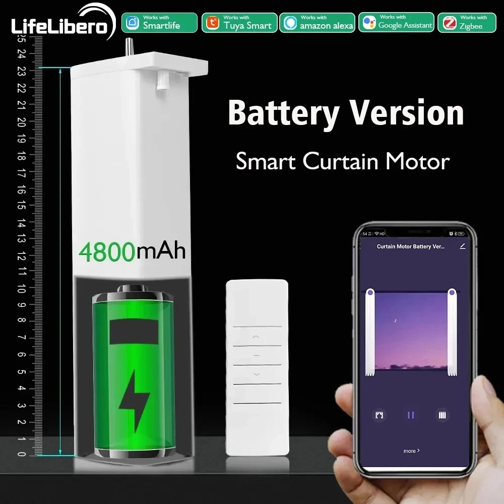 1. Battery powered, also rechargeable version of the smart curtain motor, large capacity 4800 mah