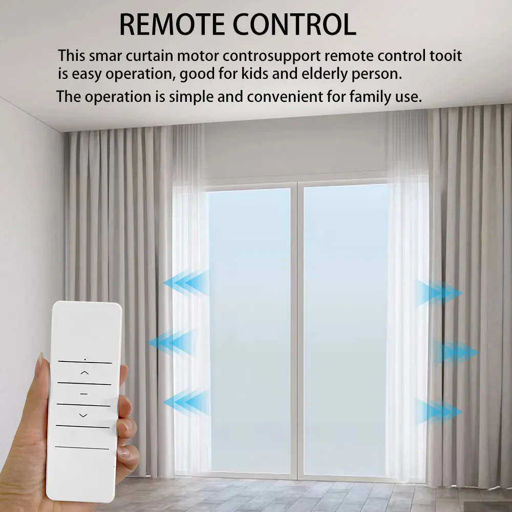 This smart battery version curtain motor also supports remote control and is easy to operate, suitable for children and the elderly.