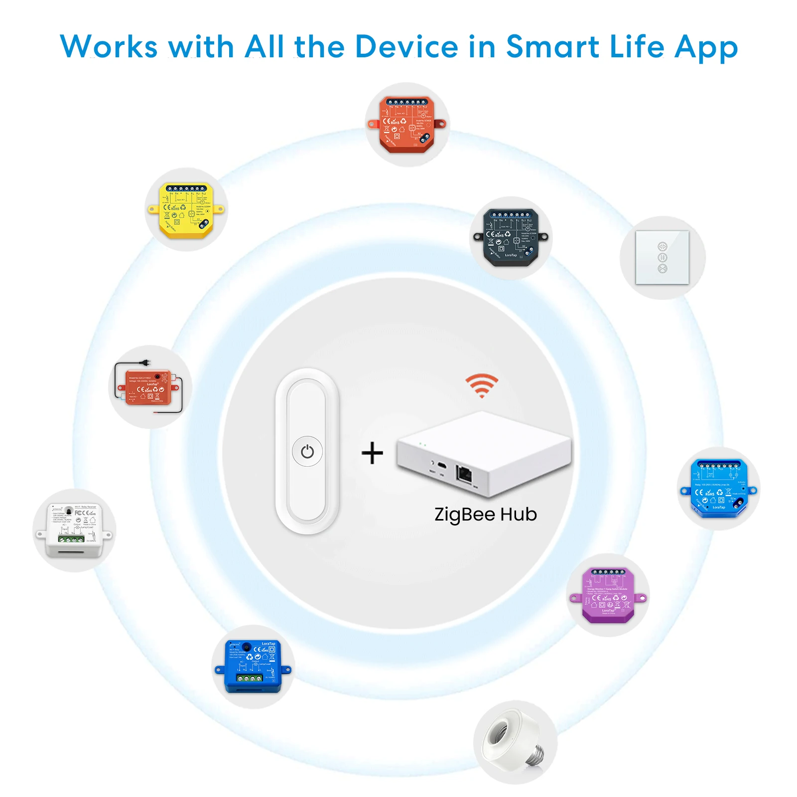 – With this Tuya ZigBee Remote and a Tuya ZigBee Hub, you can control all the smart devices in your Smart Life or Tuya App.