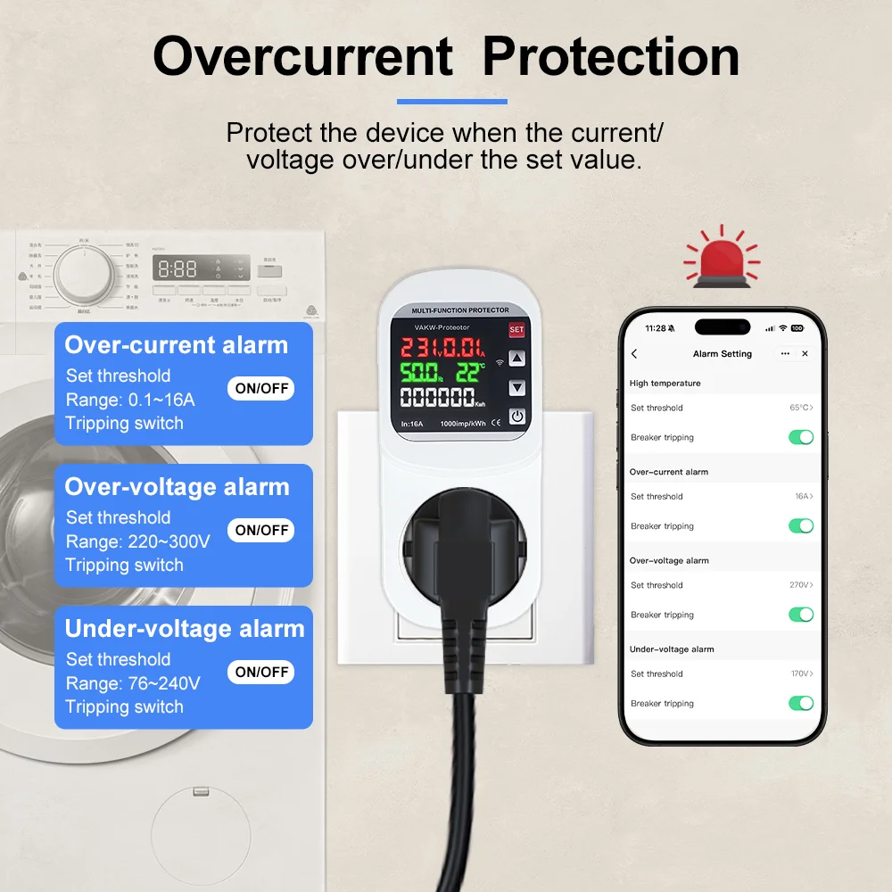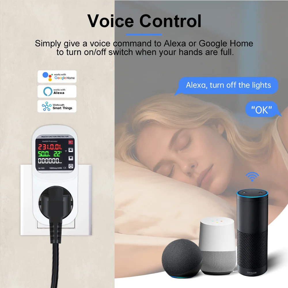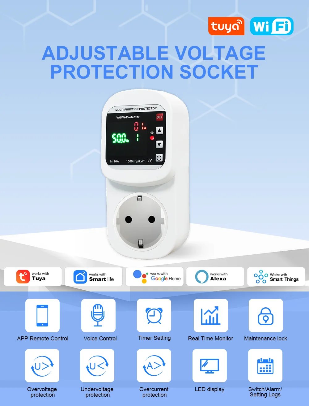 Manhot Smart WIFI Voltage Protector Socket 16A djustable Digital Display Over Current Over/Under Voltage Protection EU Socket