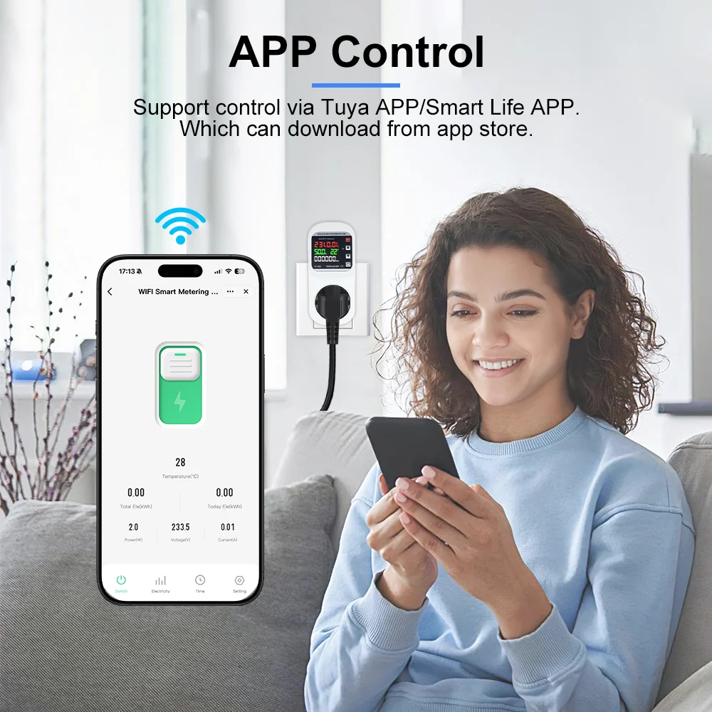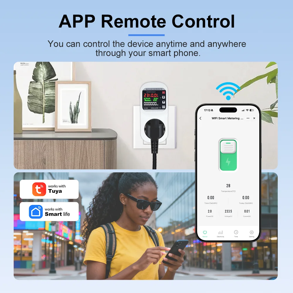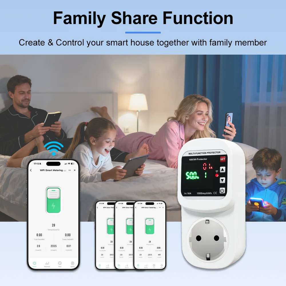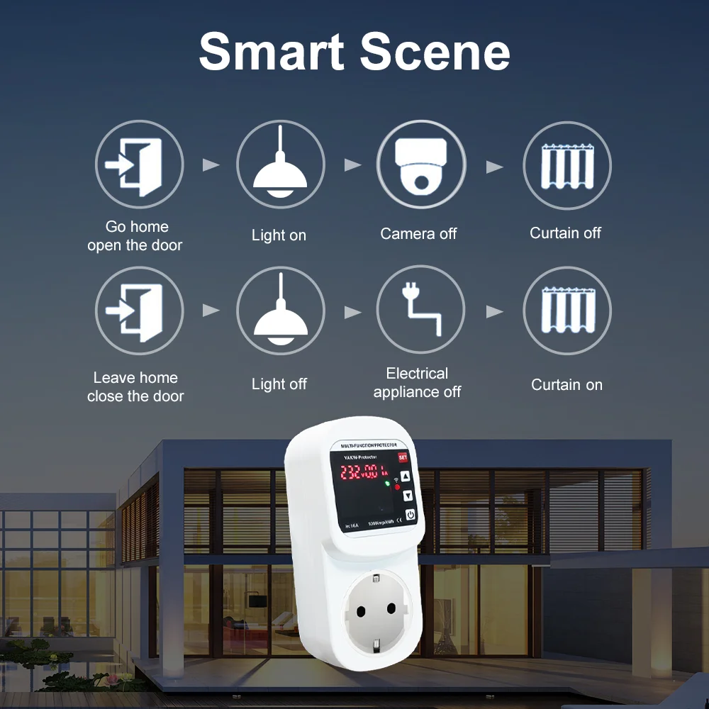 Manhot Smart WIFI Voltage Protector Socket 16A djustable Digital Display Over Current Over/Under Voltage Protection EU Socket