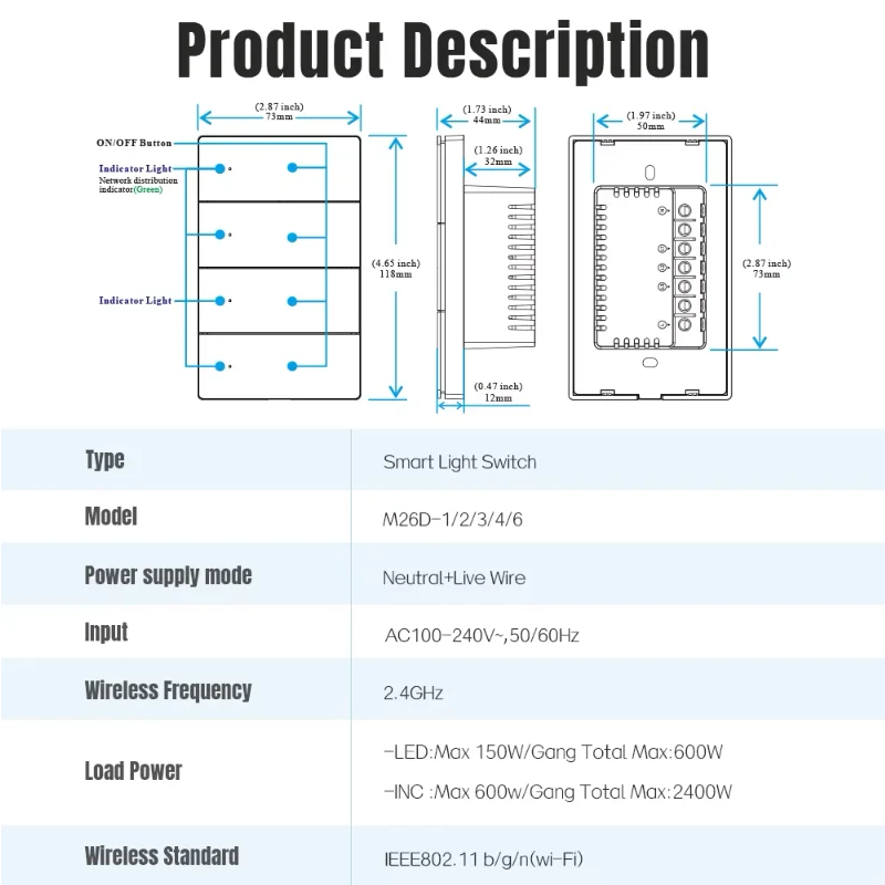 Available in 1/2/3/4/6 gang options to suit various lighting setups.
