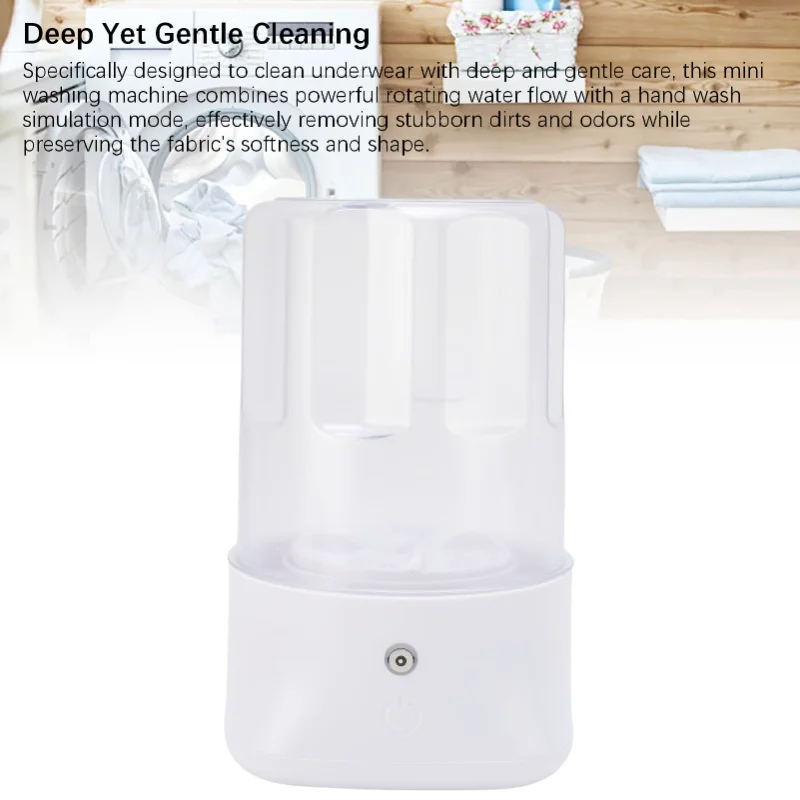 1.Deep Yet Gentle Cleaning: Specifically designed to clean underwear with deep and gentle care, this mini washing machine combines powerful rotating water flow with a hand wash simulation mode, effectively removing stubborn dirts and odors while preserving the fabric’s softness and shape.